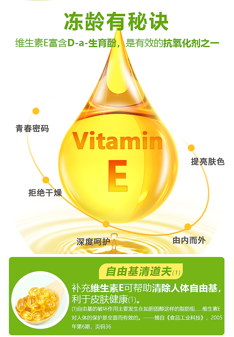 内服外用,由内而外,吃出自然白皙,补充维E,淡斑,抗氧化!增加免疫力,锁水嫩肤!
