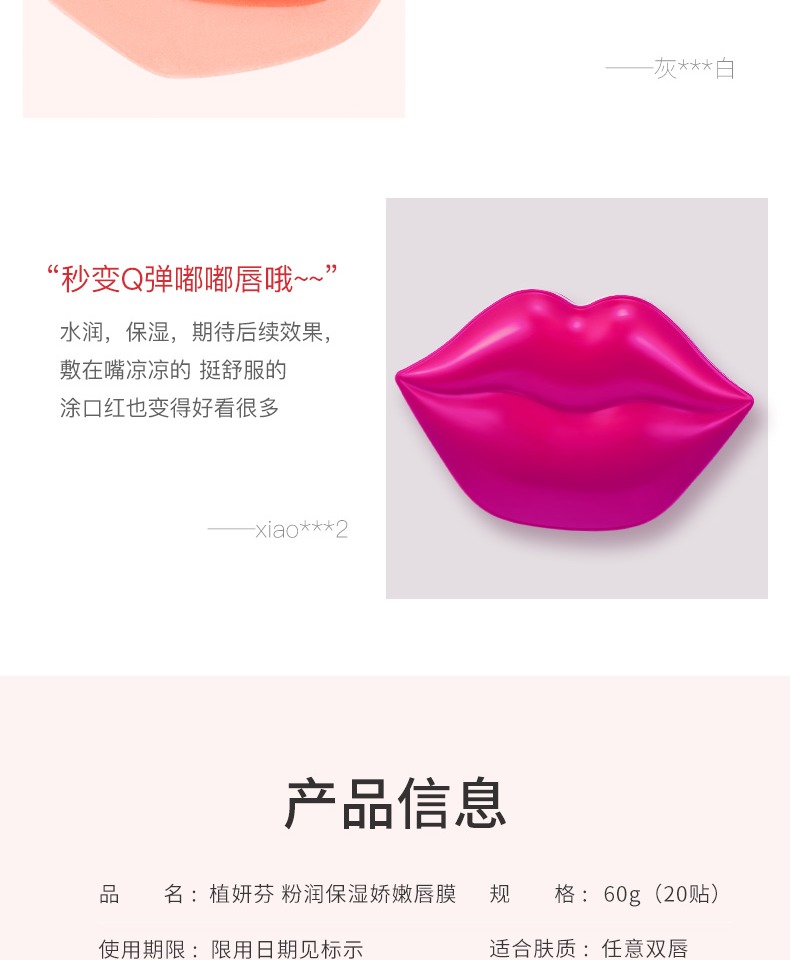 保湿补水,防裂防干,淡化唇纹,去死皮贼好用,每天贴一片,粉嫩Q弹,想不到的滋润,日夜守护你的双唇,上妆更美啦~