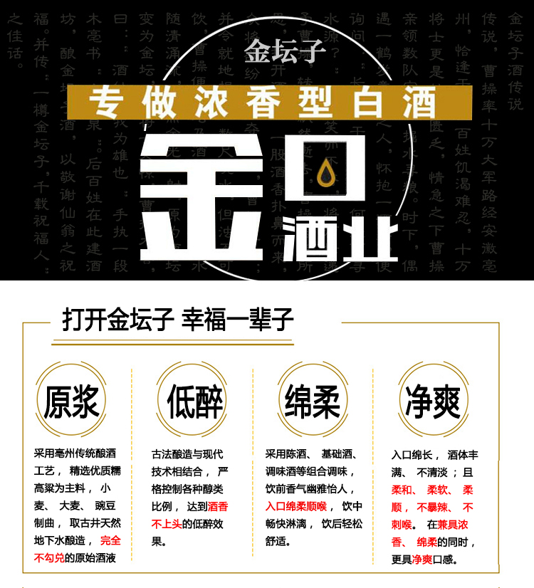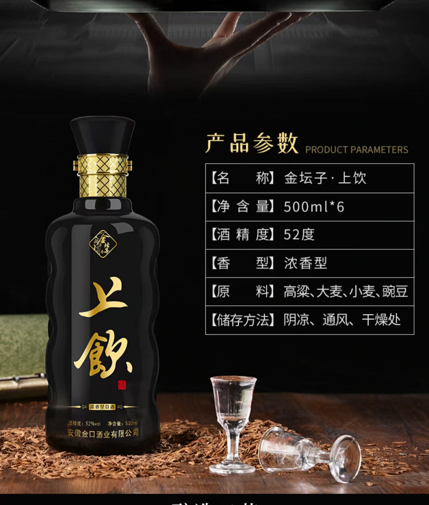 安徽金坛子,500ml*6瓶整箱,浓香型原浆,粮食酒,白酒上饮,52度,酒厂自营,品质保证