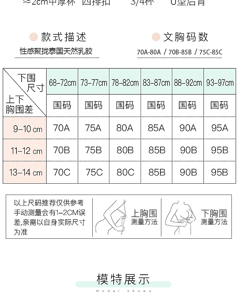 【推荐理由】选用泰国天然乳胶内衣含量95%,拯救乳房真爱健康,3D无钢圈天然乳胶,开有裂变卷更优惠,内衣更加透气,可拆卸内杯,舒适面料,内衣还是选用来自大自然的保护