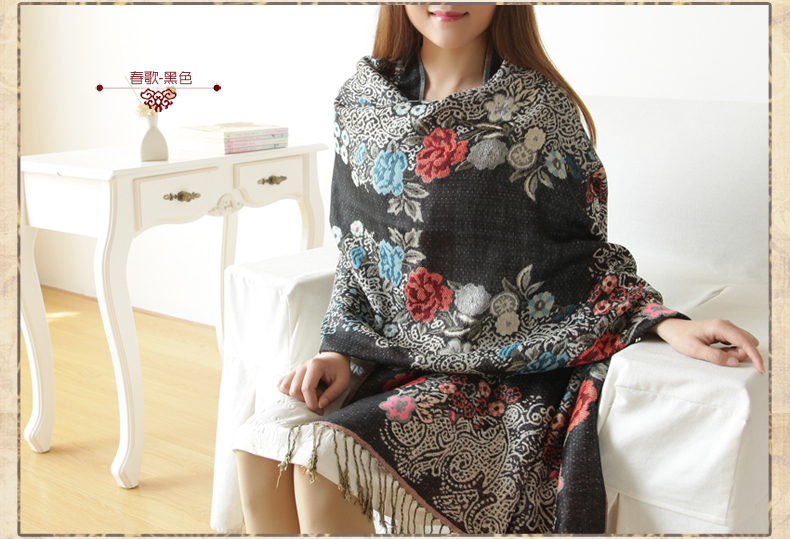 羚羊早安,秋冬季女士花纹,保暖民族风秋冬披肩围巾两用,民族风情,材质柔软,空调披肩,保暖围巾。