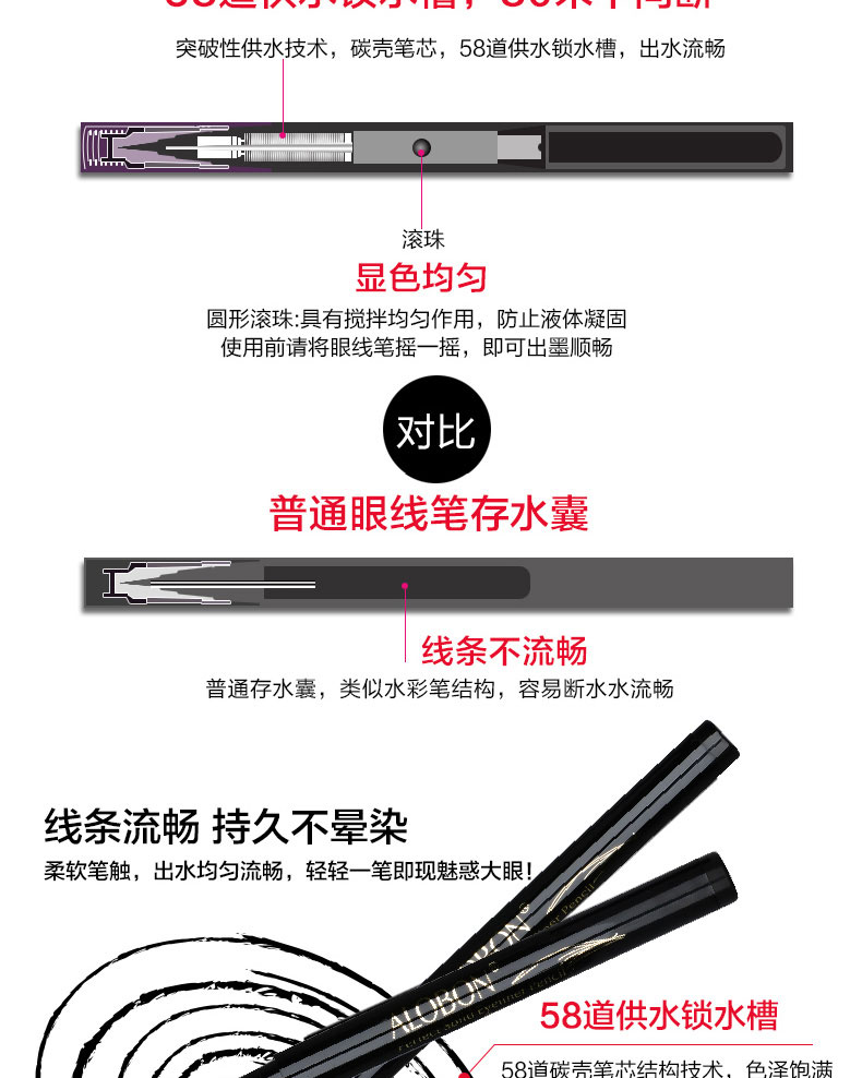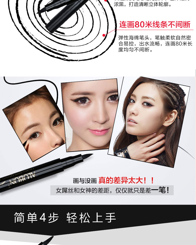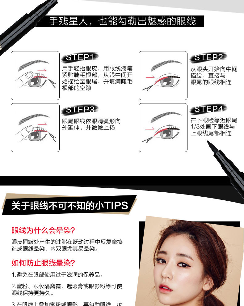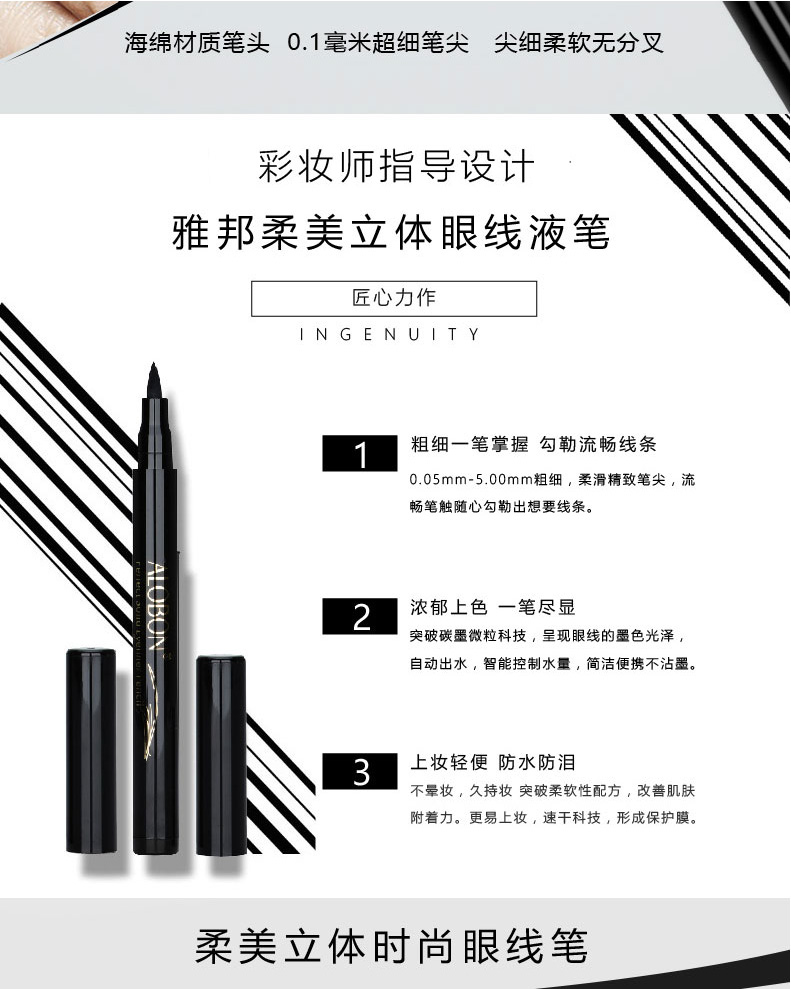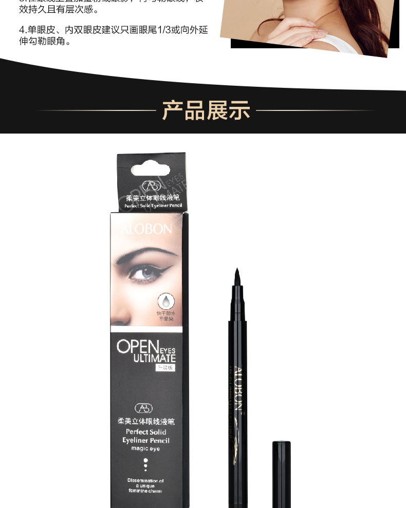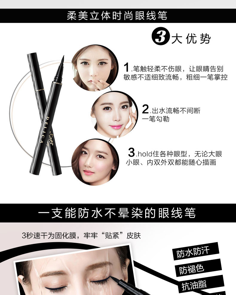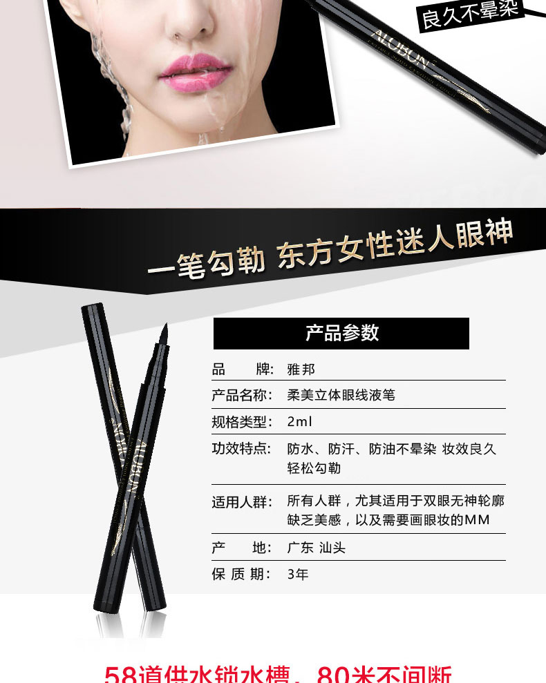 雅邦柔美立体眼线液笔,彩妆师指导设计,线条流畅,饱满显色,不易晕染,持久妆效,防水防泪上妆轻便不晕妆,告别小眼妹让你拥有深邃大眼