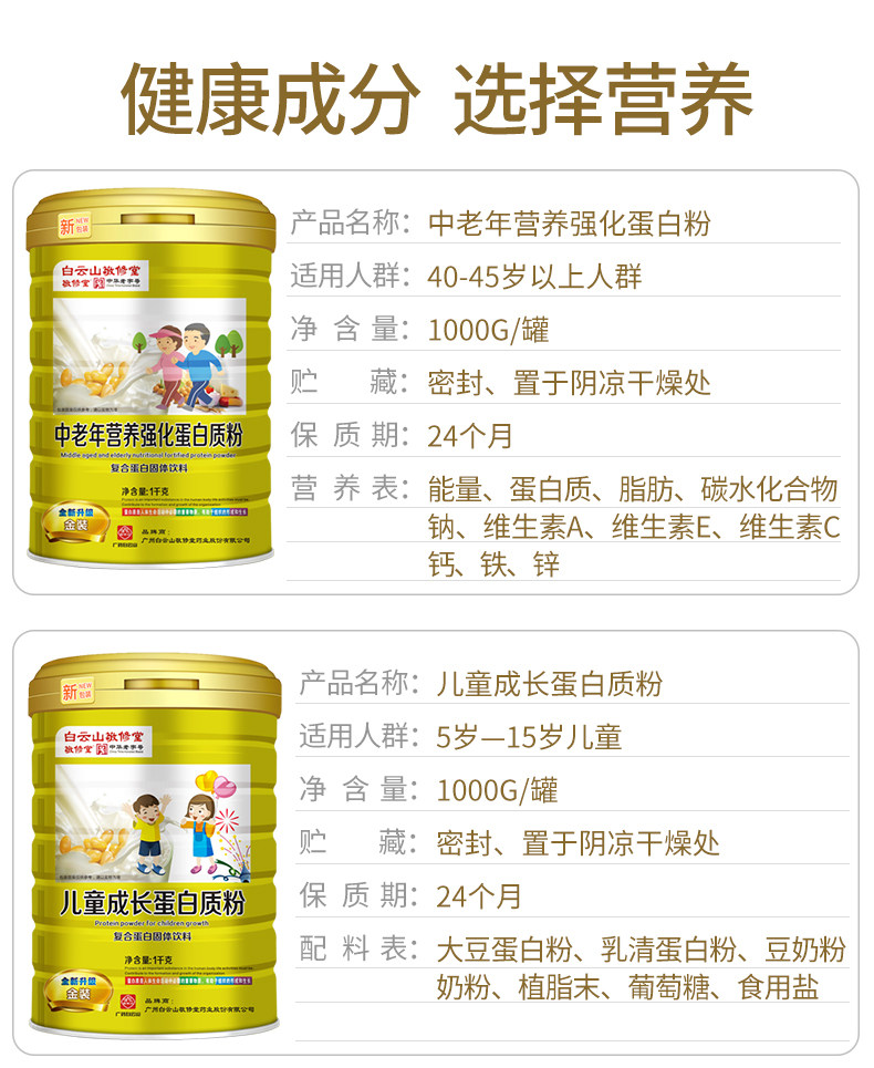 白云山静修堂中华品牌,精选非转基因大豆蛋白粉,分离乳清蛋白粉,添加维生素A/E/C,钙,铁,磷等成分,被称为“蛋白精华”,具有丰富的蛋白质,老少皆宜,送礼佳选,营养又健康。【赠运费险】
