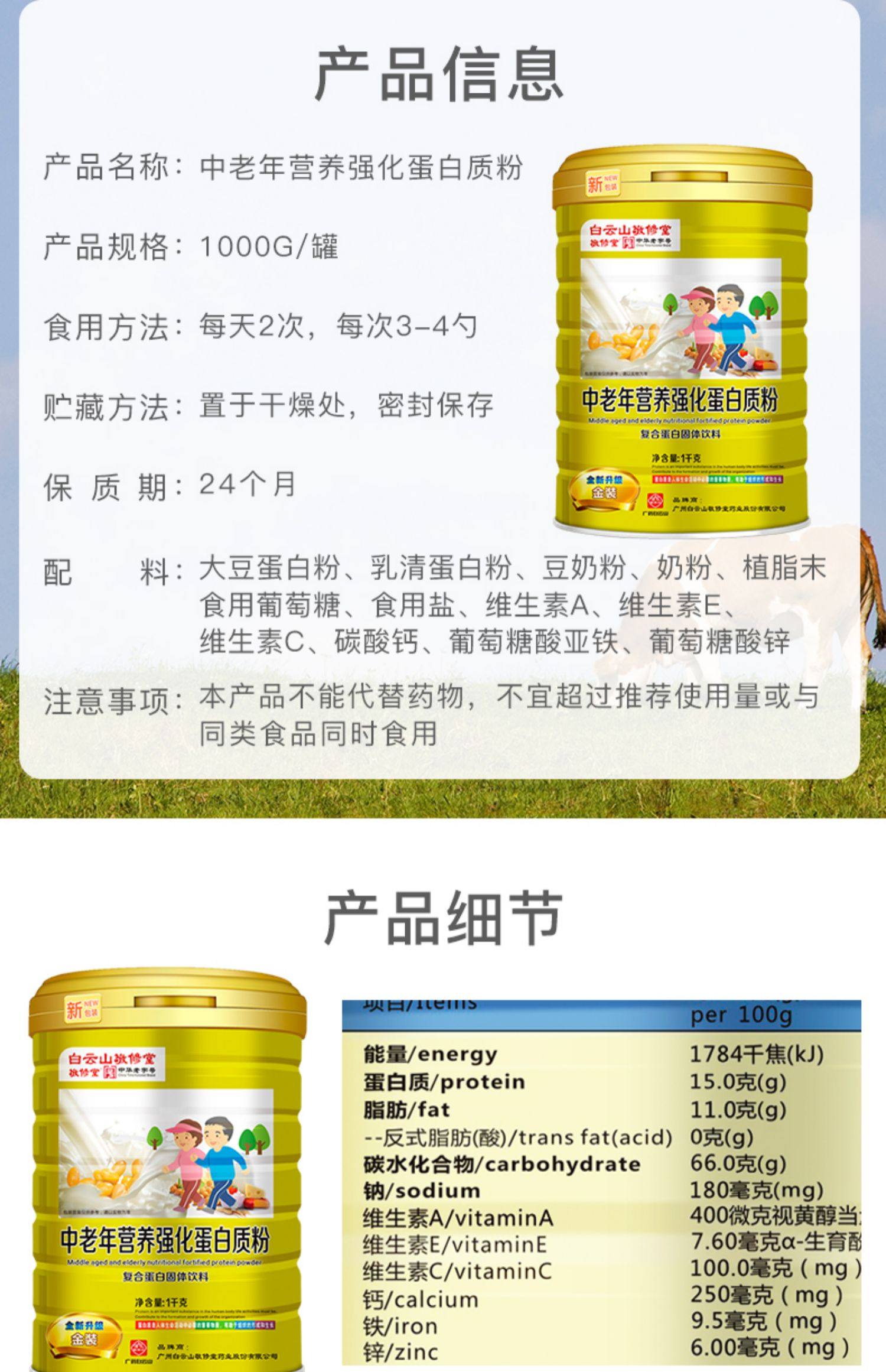 白云山敬修堂乳清全营养蛋白质粉