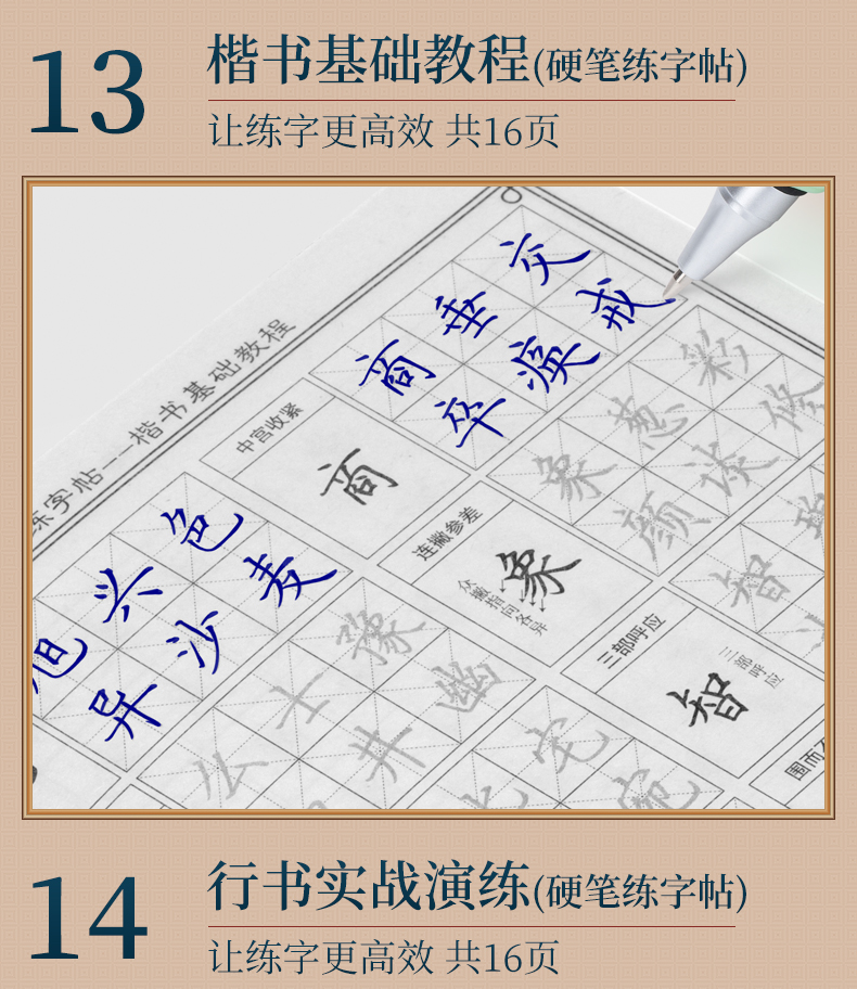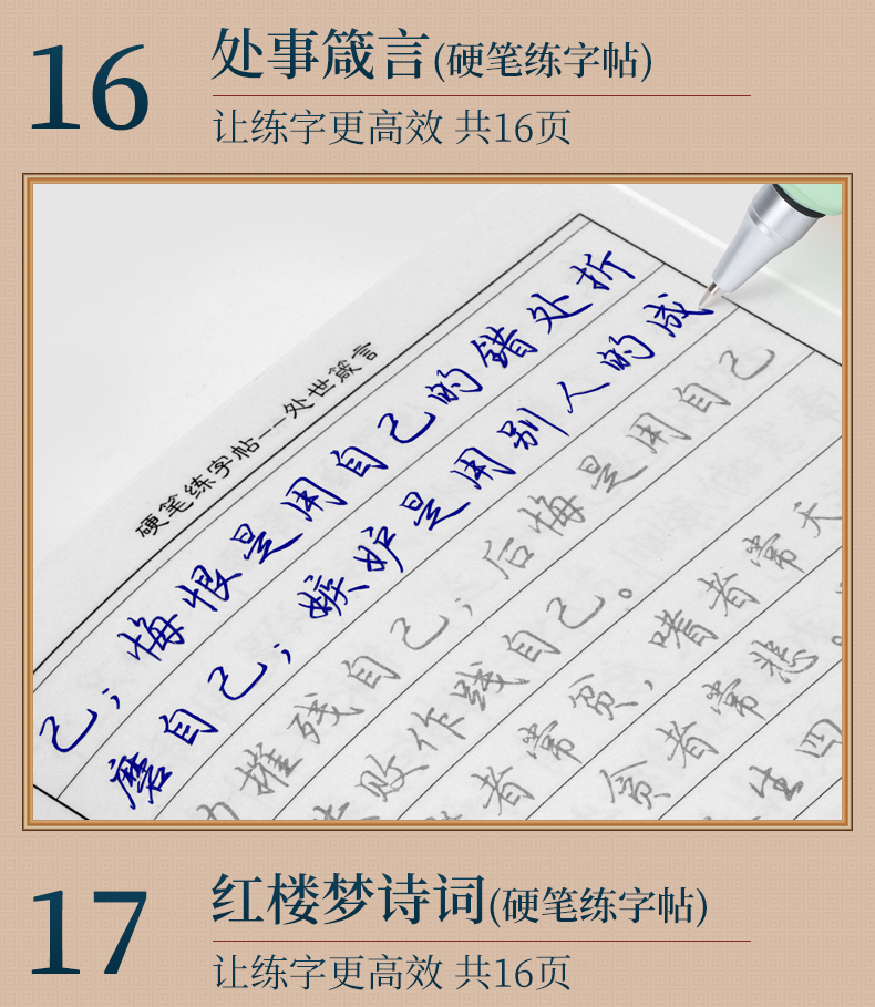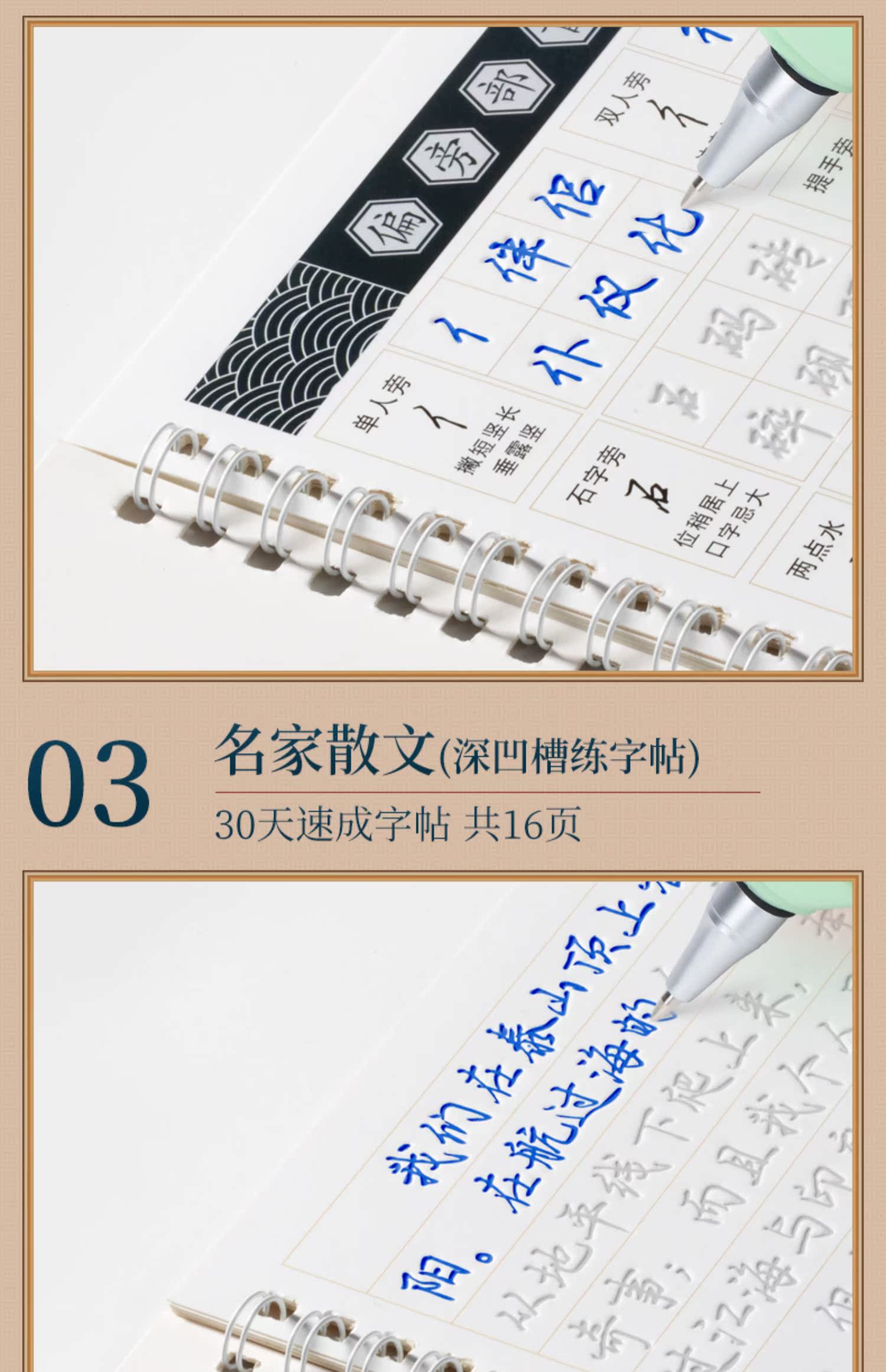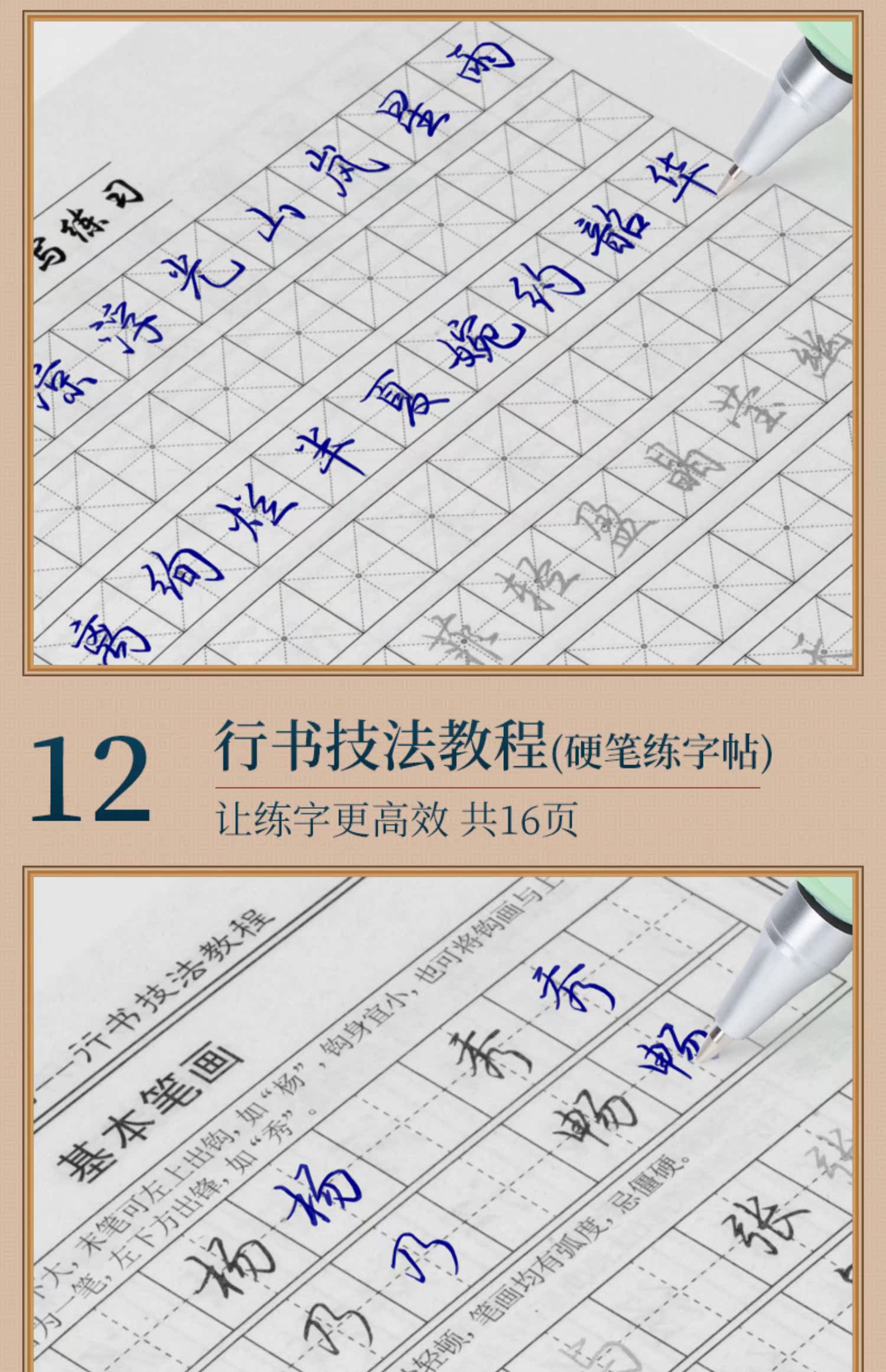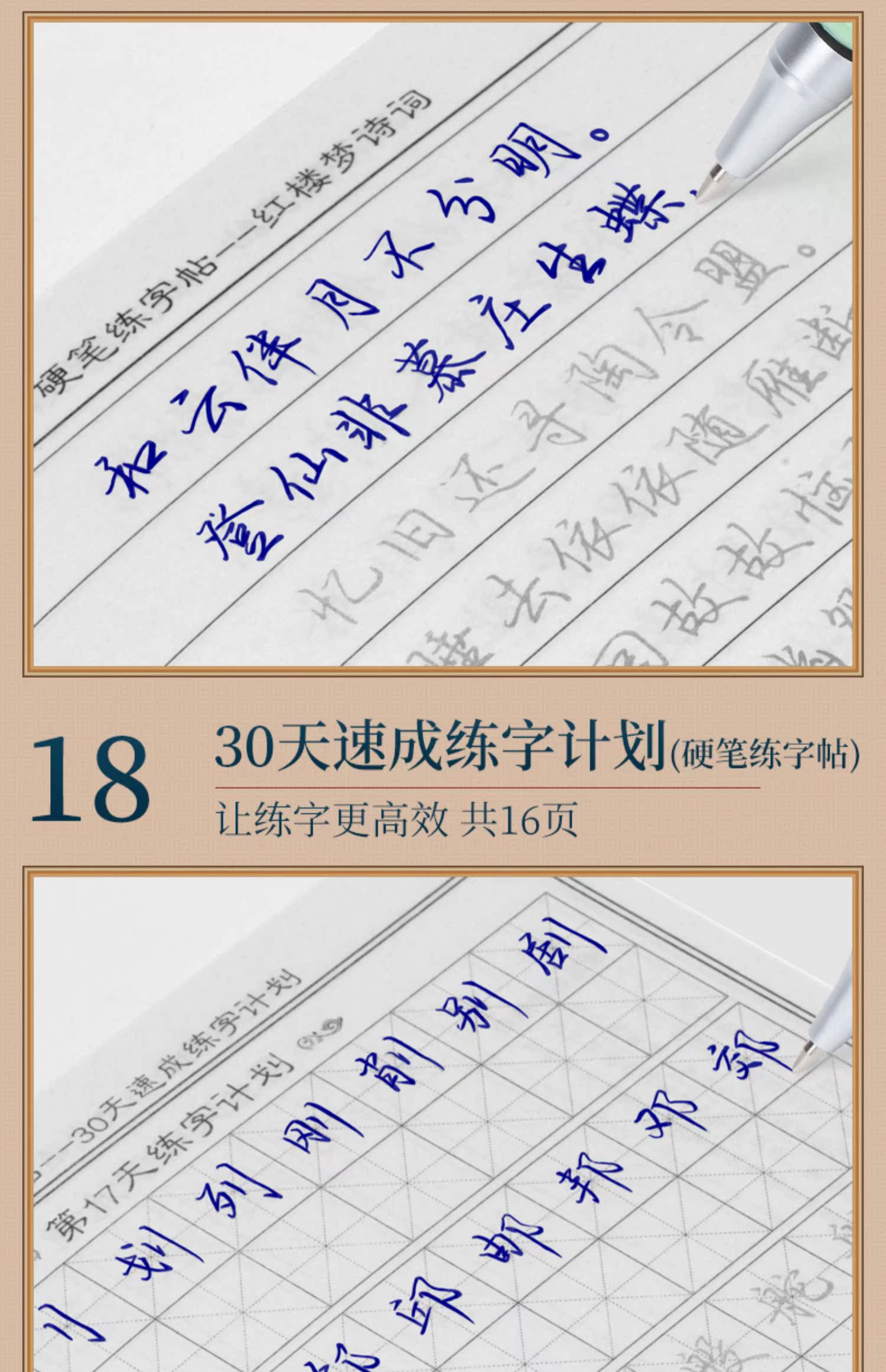 成人字帖23本+20芯+2笔+2握笔器,只要19.9!送消失笔芯,可循环使用,21天速成一手好字!