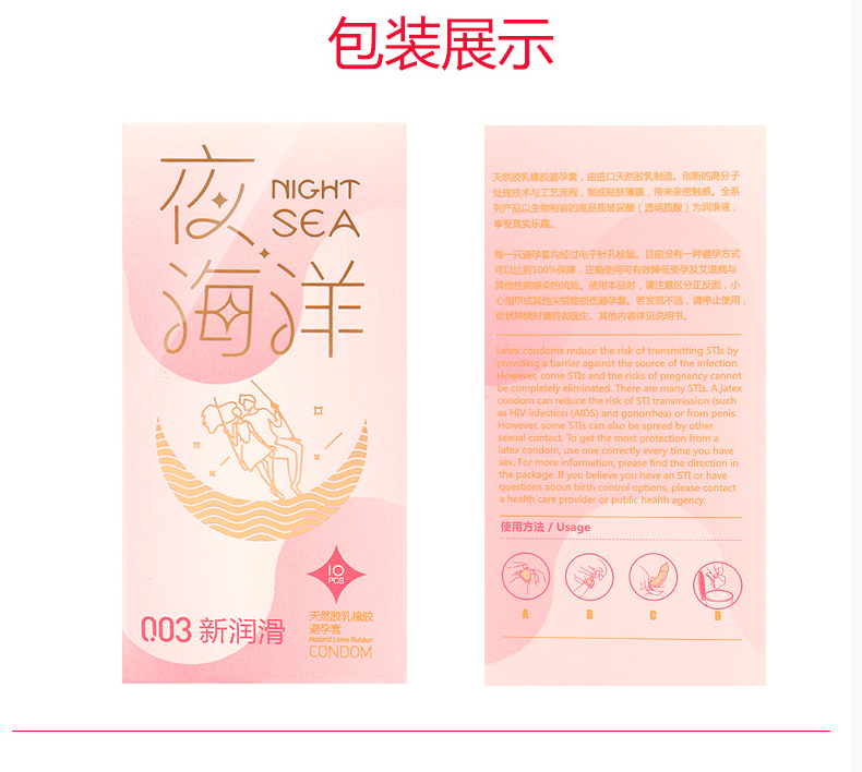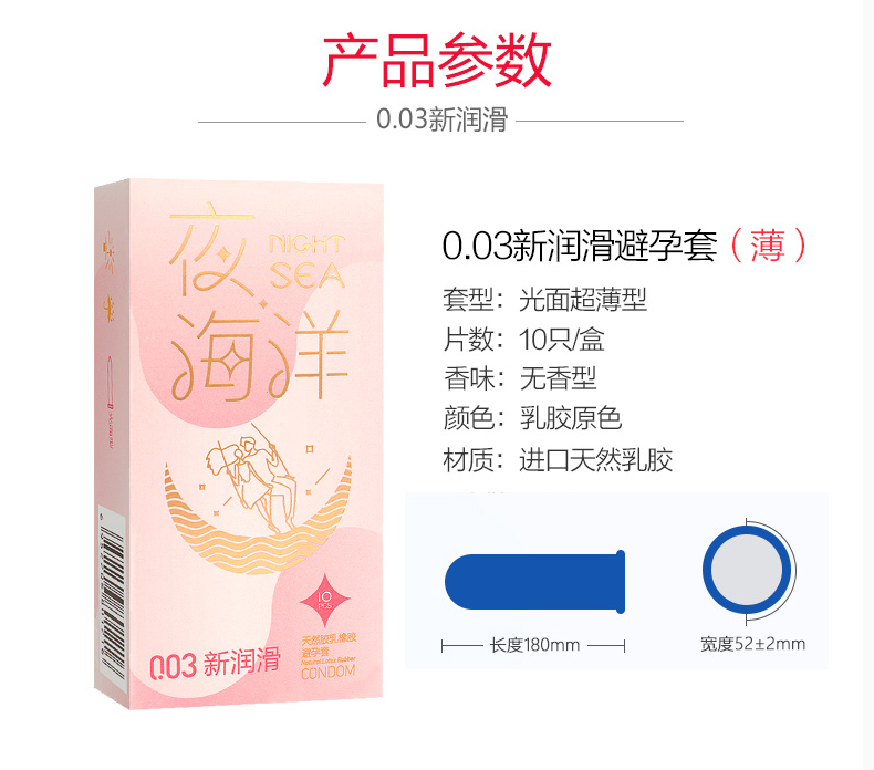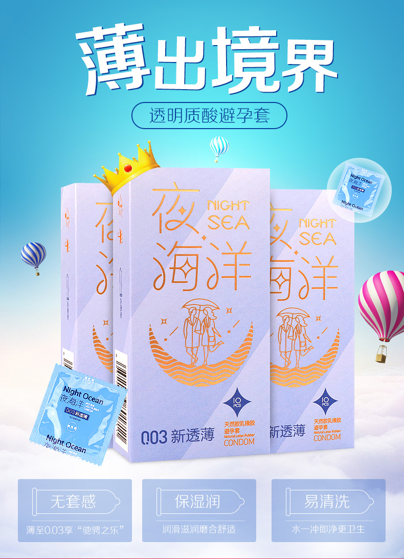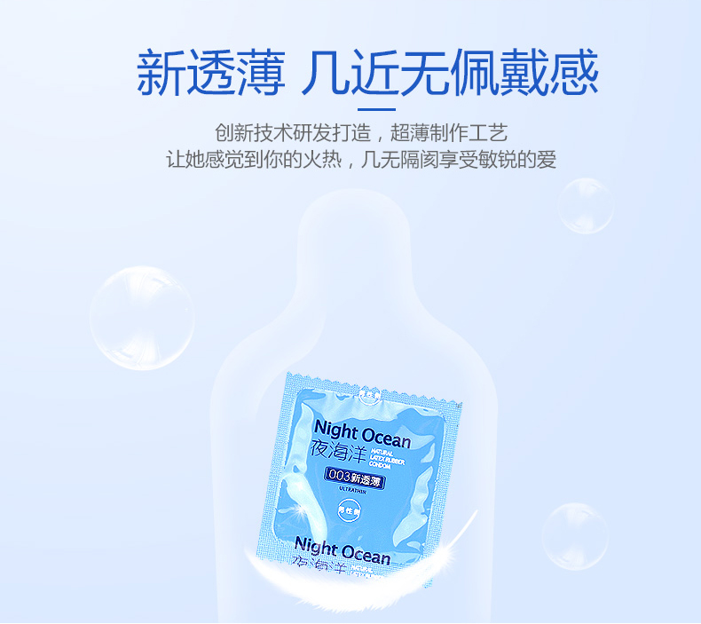 夜海洋超滑超薄避孕套,每一次相拥都让爱火燃烧,采用天然乳胶制成,贴身呵护,爱有品质,贴合平面设计,符合人体需求,适量润滑剂,更光滑,更舒适。