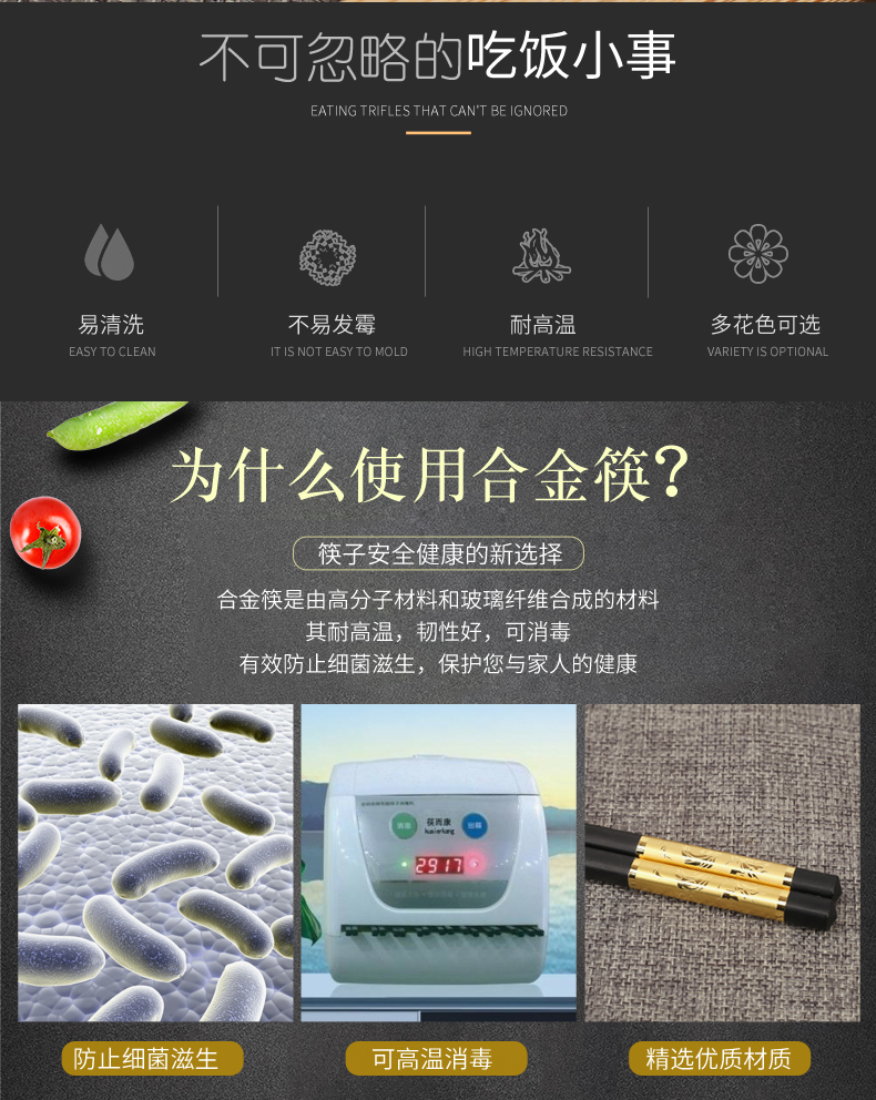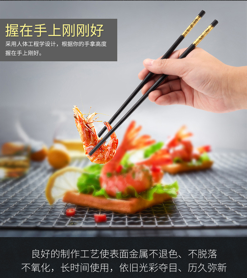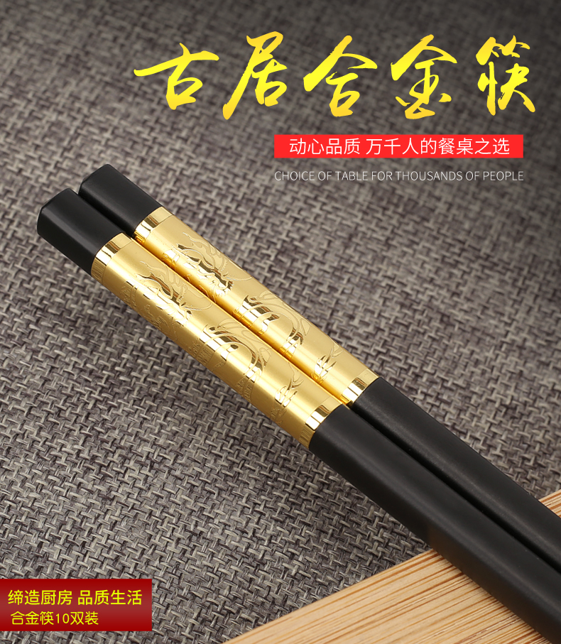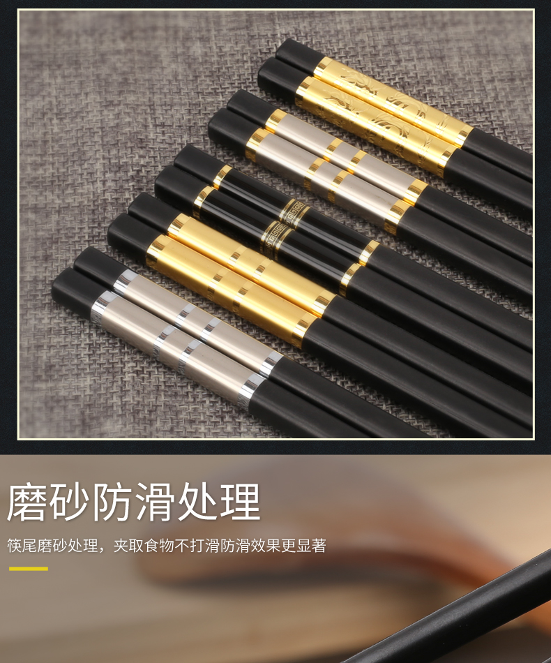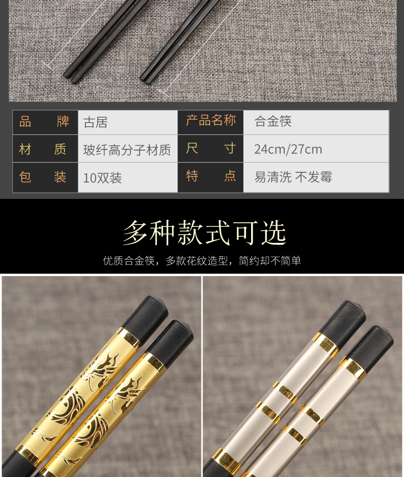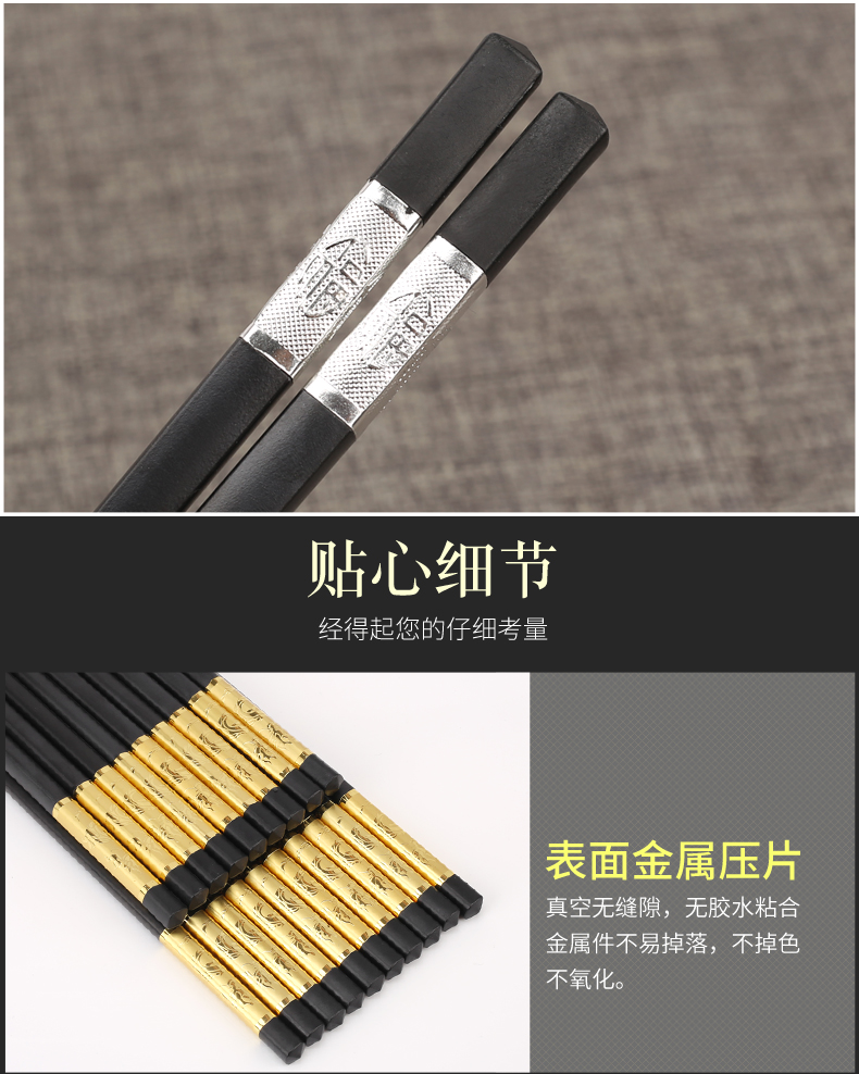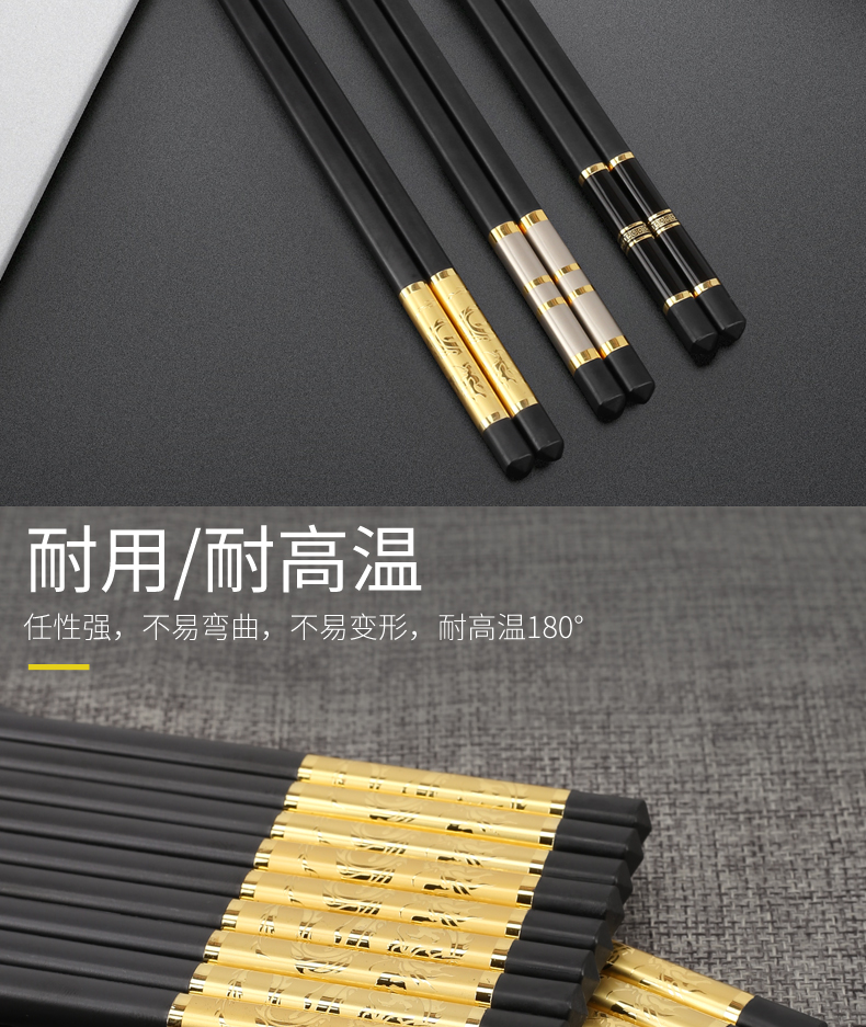 【金福银福可选,健康合金筷子】超值10双装,通过SGS欧盟标,耐高温消毒,不易变形,守护家人健康,筷头精美装饰,点缀你的生活!【赠运费险】