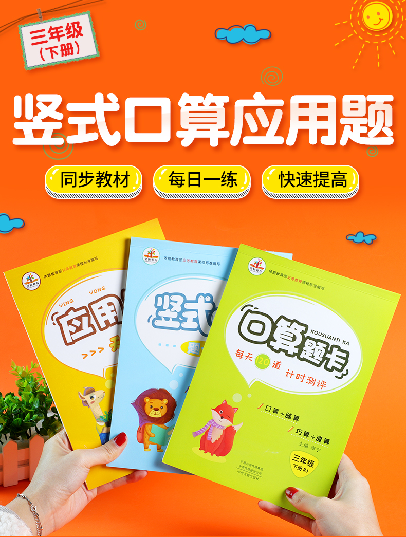 【口算+应用题+竖式计算共3本】轻型用纸,柔软不伤手,名师教你巧思妙解,天天练习,速度提升,强化口算能力,提高运算速度。【正品保证】