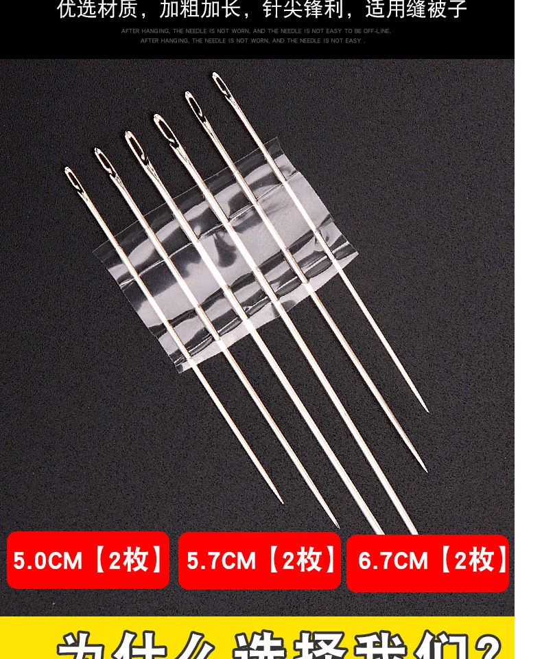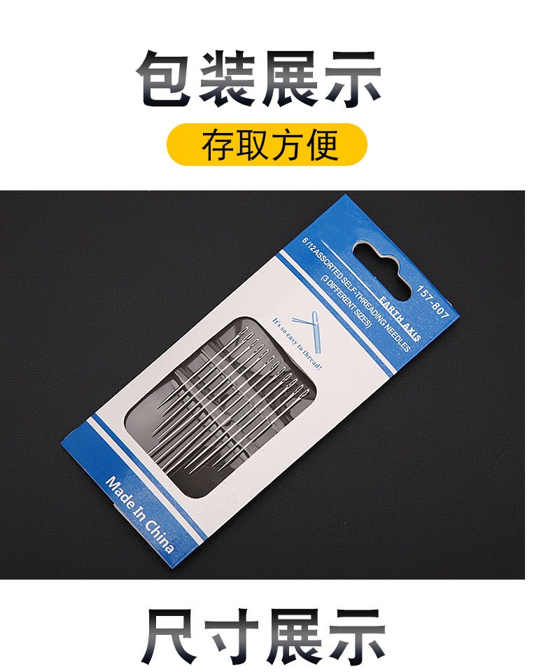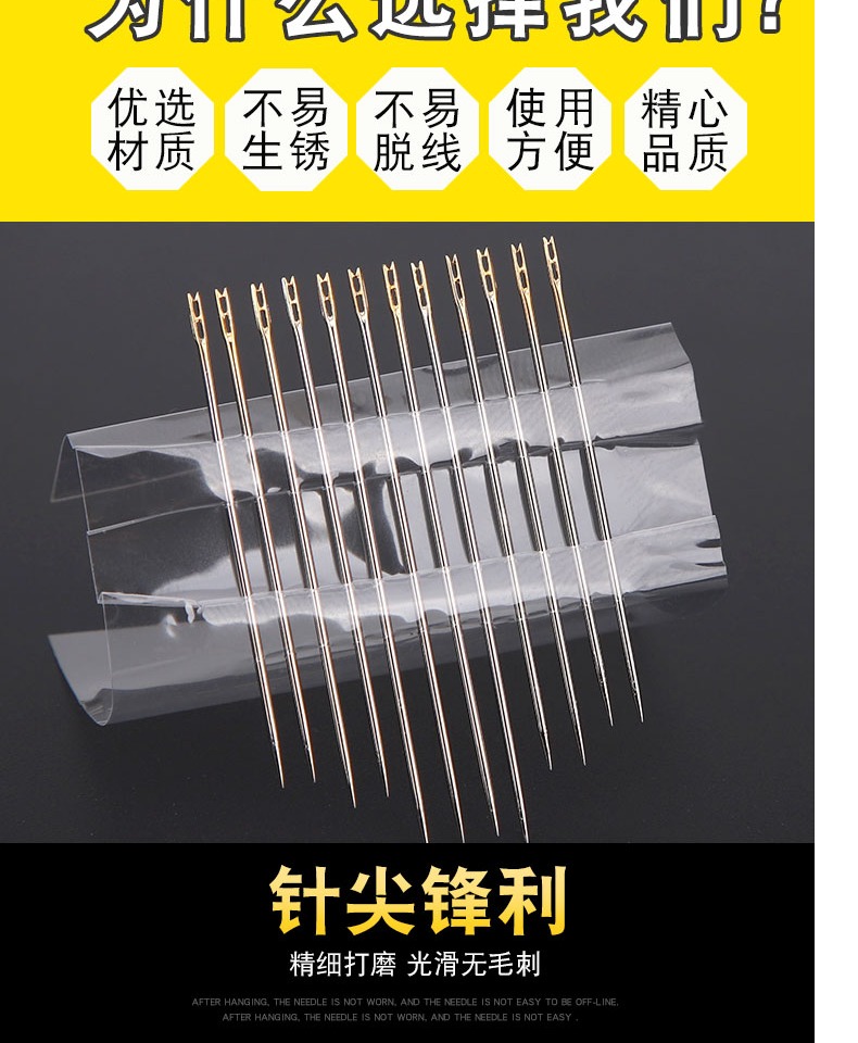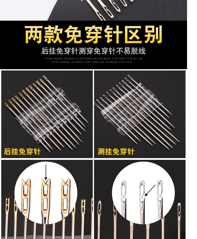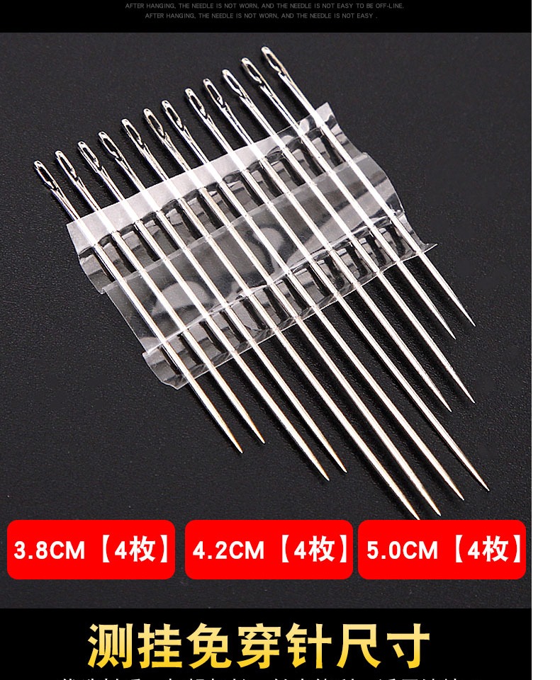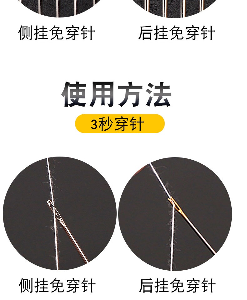 不用穿线的针,高品质免穿金尾针,不掉线,不易生锈,细针缝普通衣服,粗针缝被子和厚衣服,优选材质使用方便,老人和盲人都可用。