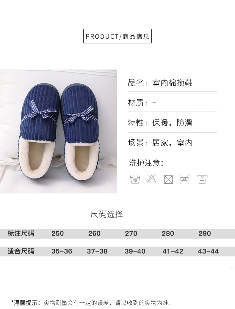 正品保证!简约素色棉拖鞋,灯芯绒面料更舒服,加厚短毛绒内里,亲肤保暖看得见!加厚防滑PVC大底、安心行走,耐磨耐穿,趁着现在便宜赶紧买!和男友来双情侣版的,超有爱!