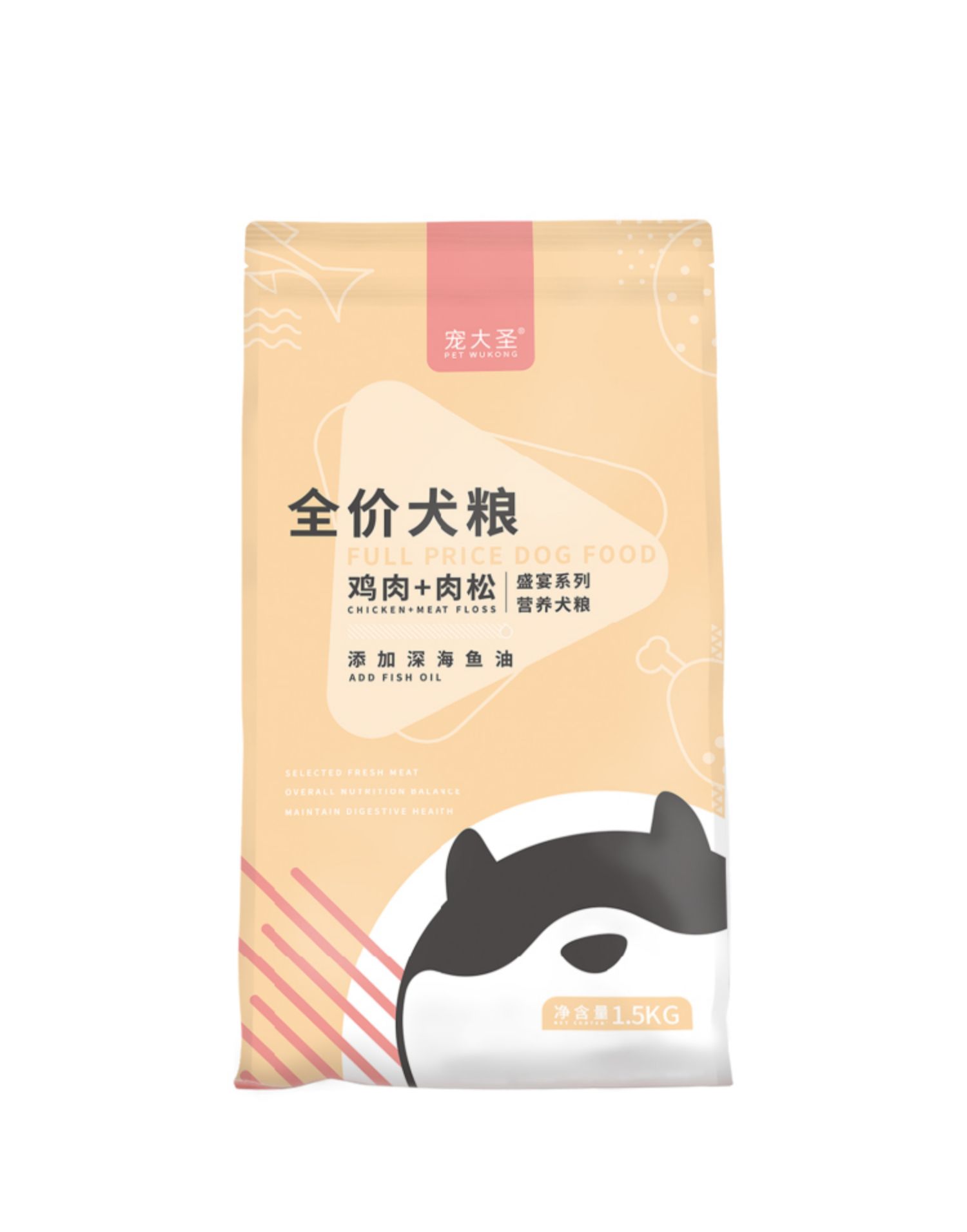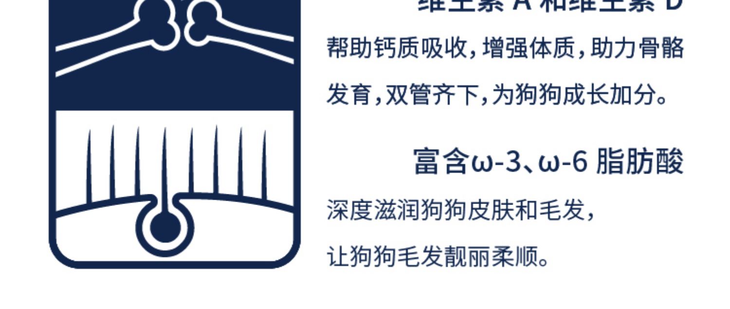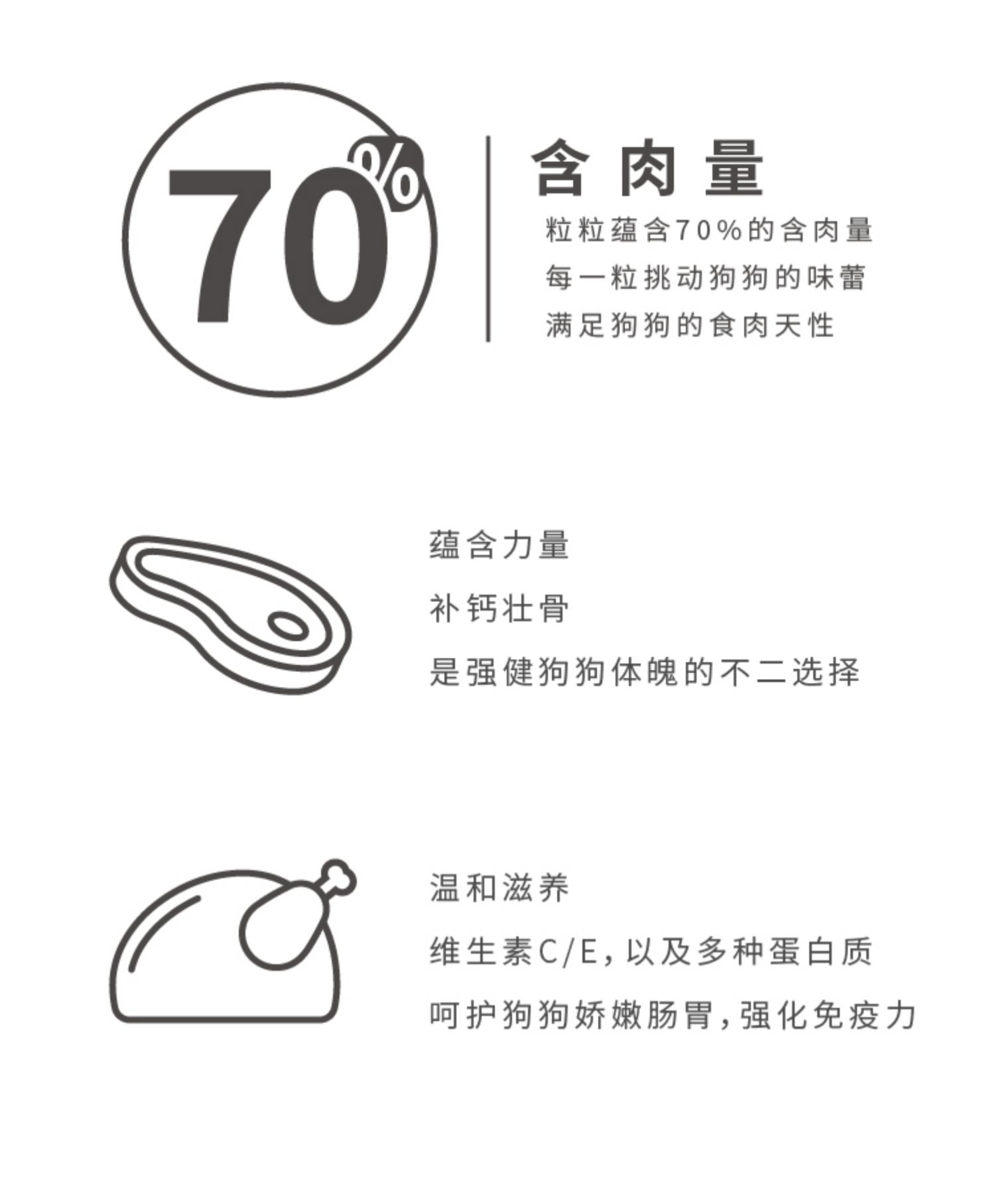 天然新鲜鸡肉配方,富含高蛋白食物和维生素等食物,营养均衡,壮骨健齿,美发健脑,促进新陈代谢,幼犬好粮,助力成长。