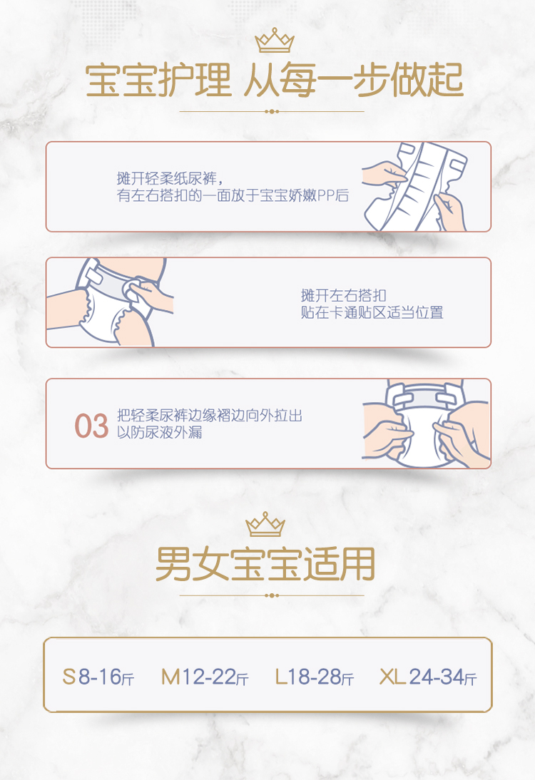 超薄透气柔软,环抱式弹性环腰,持久干爽,PH值5.5呈弱酸性,不伤皮肤,拒绝红屁屁,宝妈必备选择!【赠运费险】