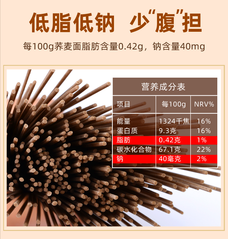 【荞麦面条600g*4袋,共2400g】优质荞麦颗粒清晰可见,细圆条,低脂低糖,营养美味又健康~