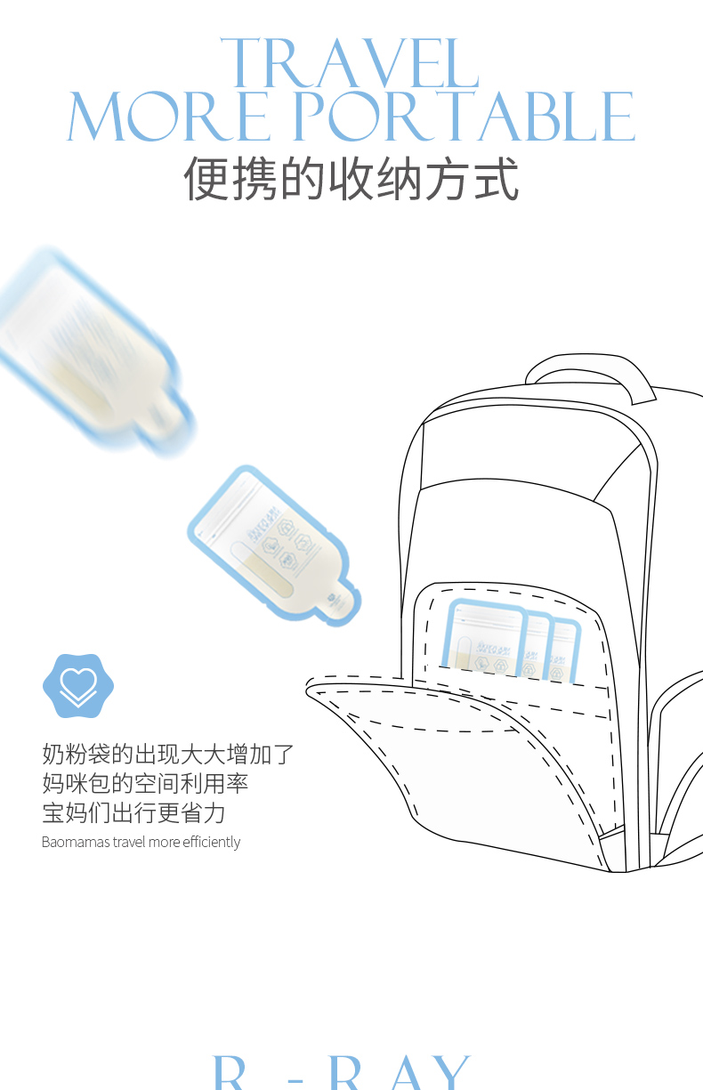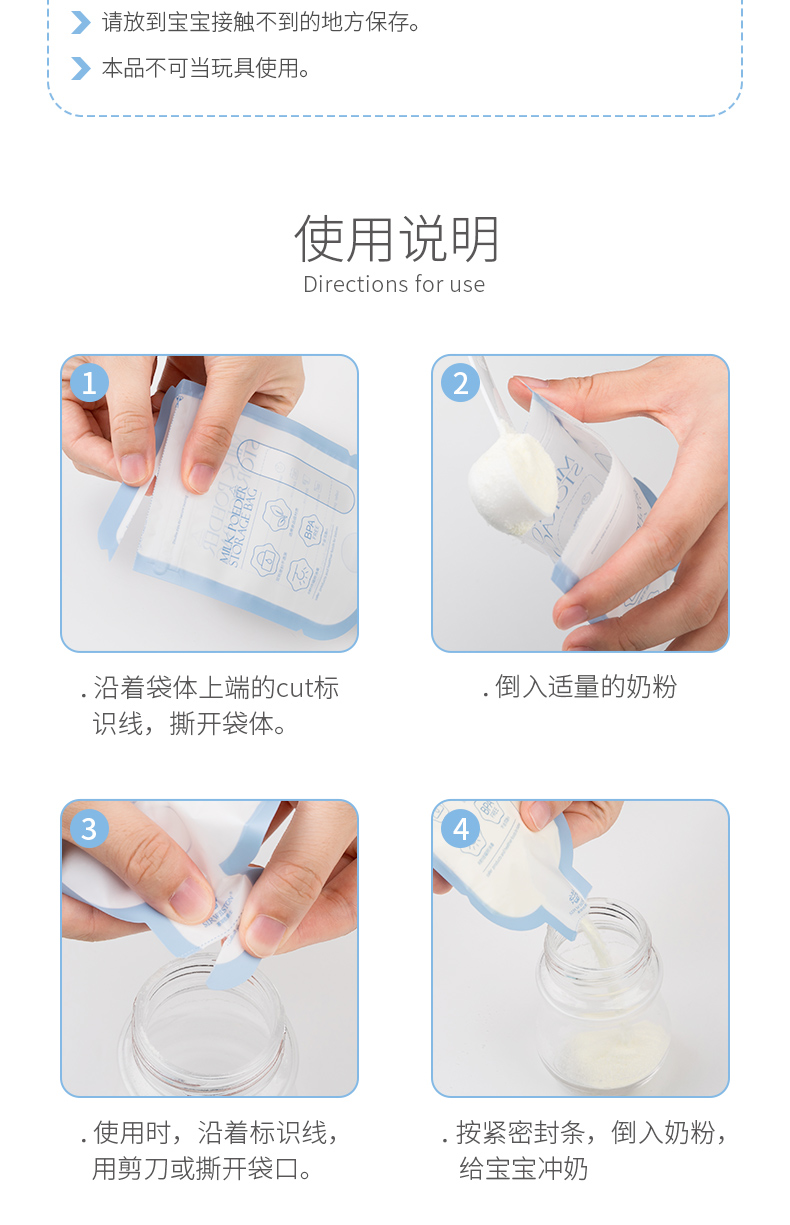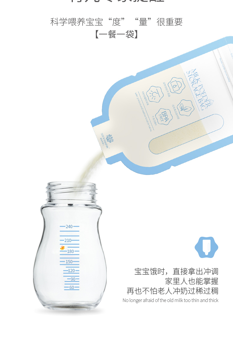 【送记号笔】食品级材质,为宝宝把关每一滴奶!独立分装,便携外出奶粉袋,存取方便,持久保鲜,辐照灭菌,妈妈放心的选择!