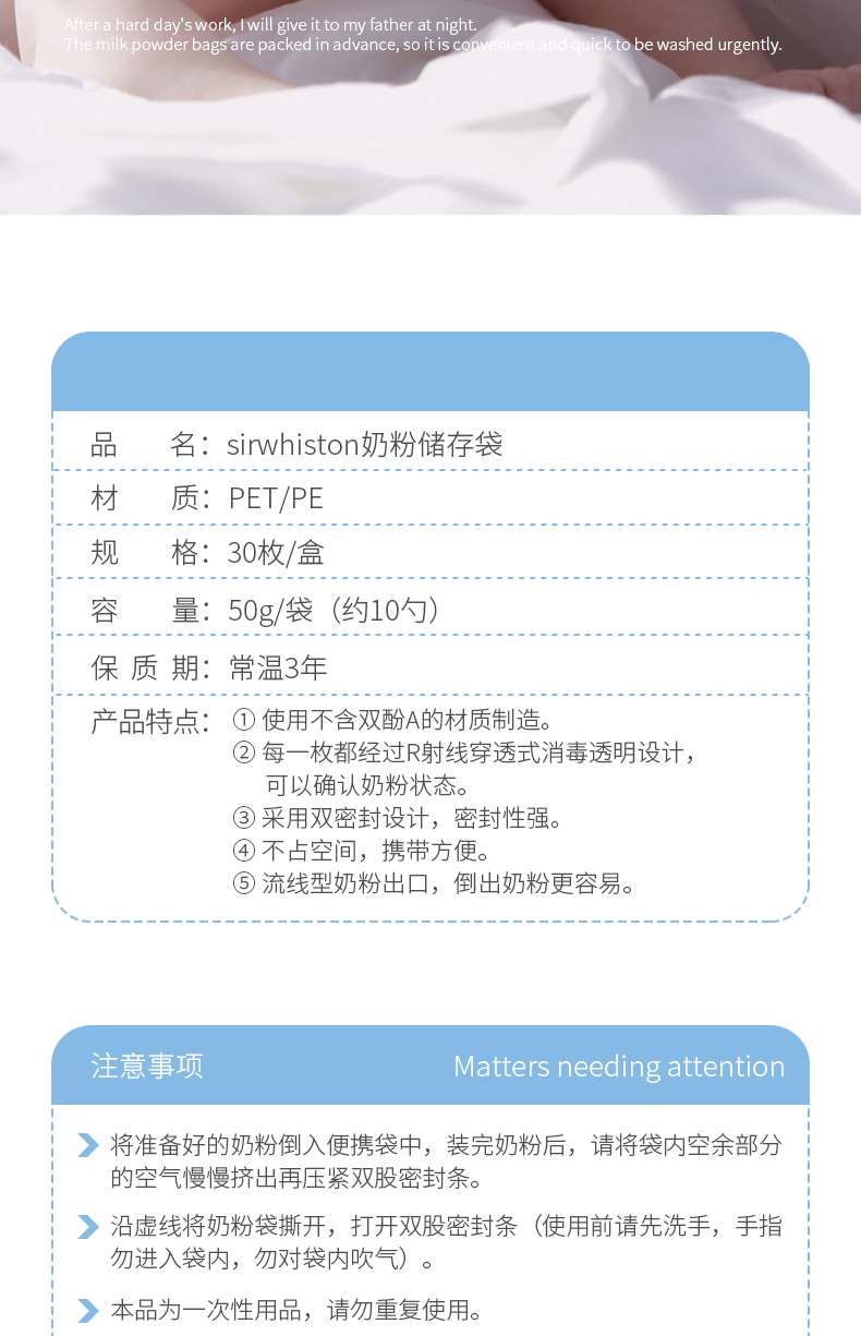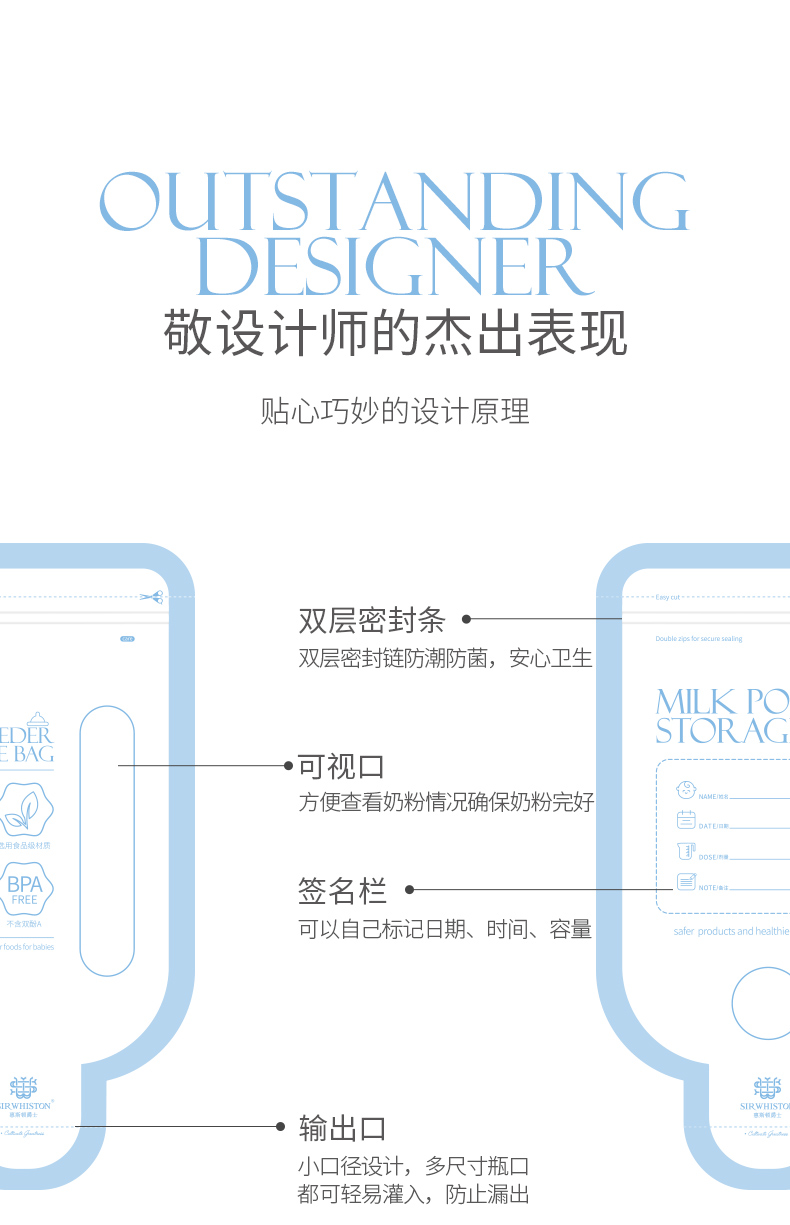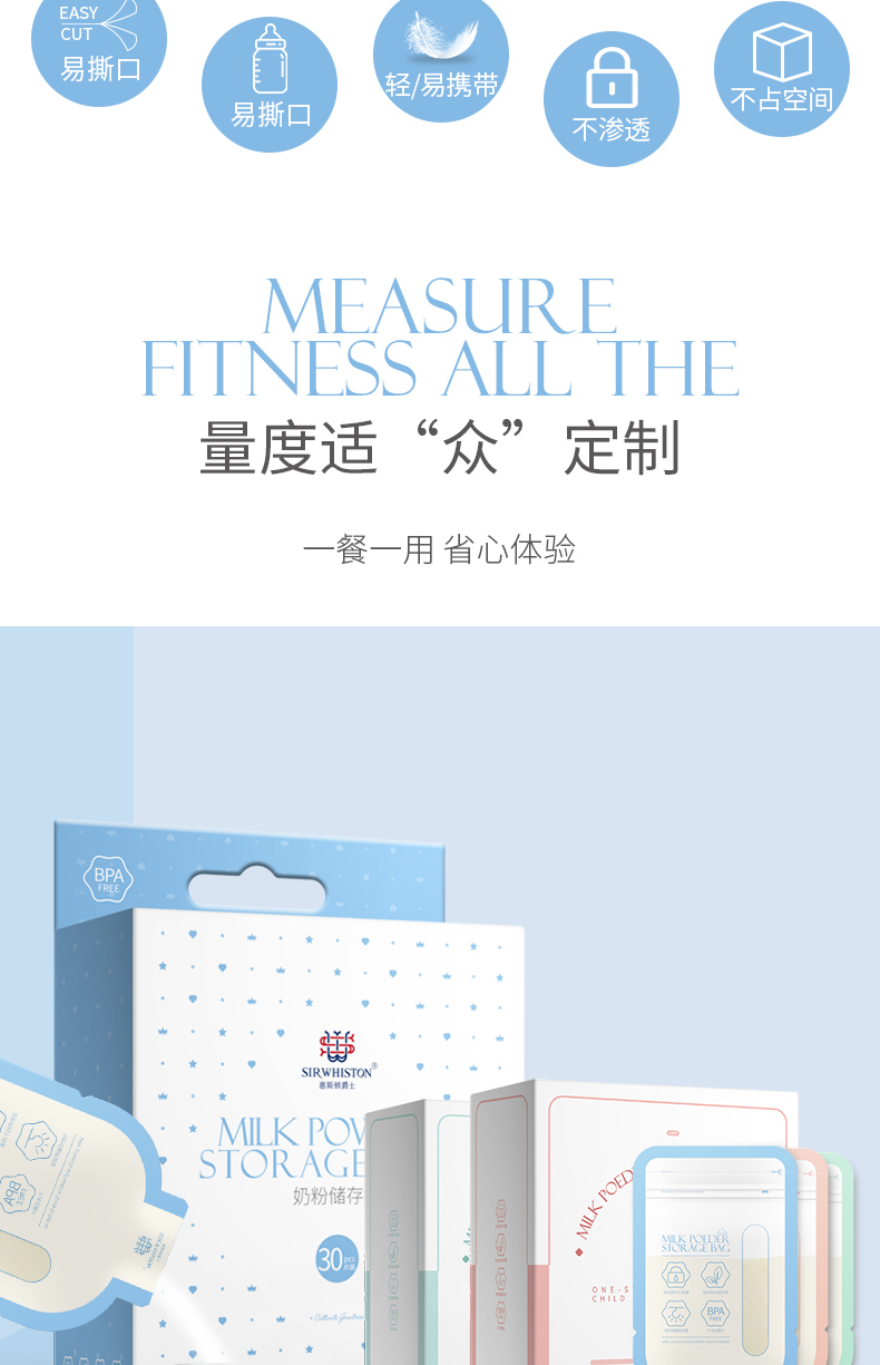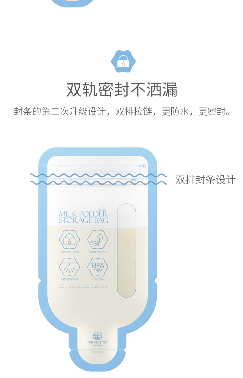 【送记号笔】食品级材质,为宝宝把关每一滴奶!独立分装,便携外出奶粉袋,存取方便,持久保鲜,辐照灭菌,妈妈放心的选择!
