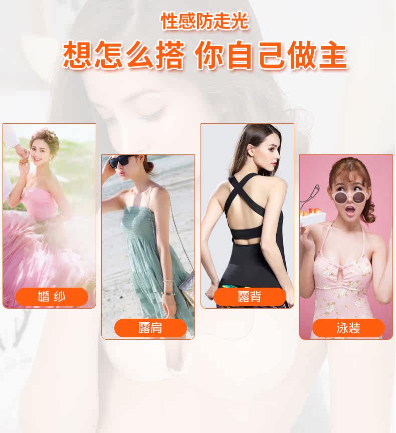 【推荐理由】:可拆卸肩带,可根据个人需求搭配透明侧贴或肩带布侧贴,百搭各式性感服饰,尽显曼妙身姿。