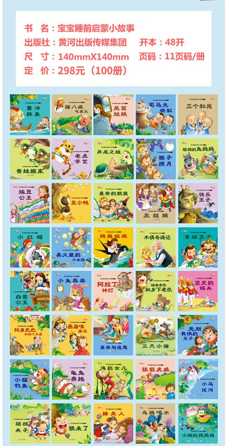 0-6周岁宝宝睡前故事书,全100册,小红帽,白雪公主,丑小鸭等经典小故事,内容精彩有趣,配图可爱,吸引宝宝,文字带有注音,学前幼儿园宝宝早教启蒙必读,宝妈必备睡前亲子故事书。