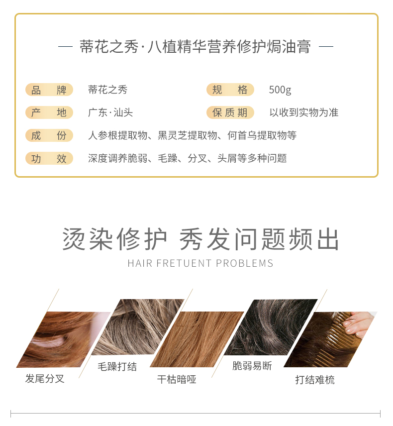 【经典国货二十四年,线下超2000+大型专柜】【王丽坤代言】超市爆款八植焗油膏,改善毛躁,烫染修护,改善分叉,保湿补水【赠运费险】