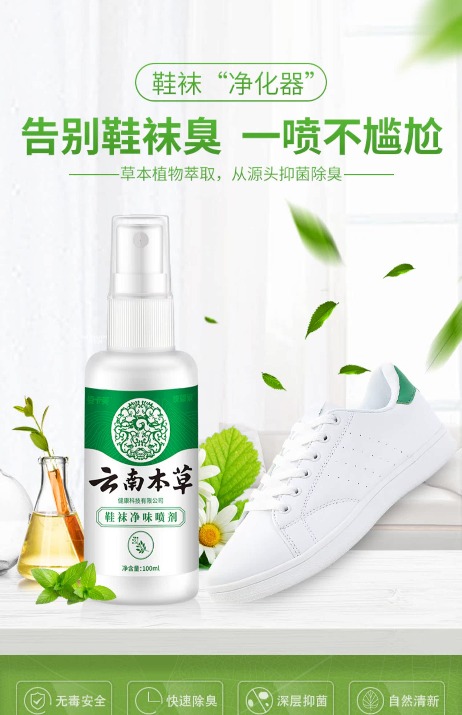 【防臭神器】拒绝脚臭!拒绝鞋袜丑!!云南本草配方,每天在脚上鞋袜上喷一下,就算吃着饭呢脱鞋都不臭。