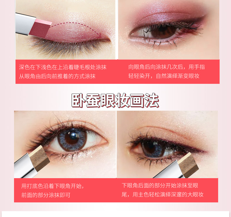 【小红书超火懒人双色眼影棒】第二件10元!线下同款,初学者必备,持久不脱妆,防水防汗易上色,轻盈服帖,即可当眼影笔,又可以当卧蚕笔,一举两得,多色可选,轻松打造你的灵动眼眸!
