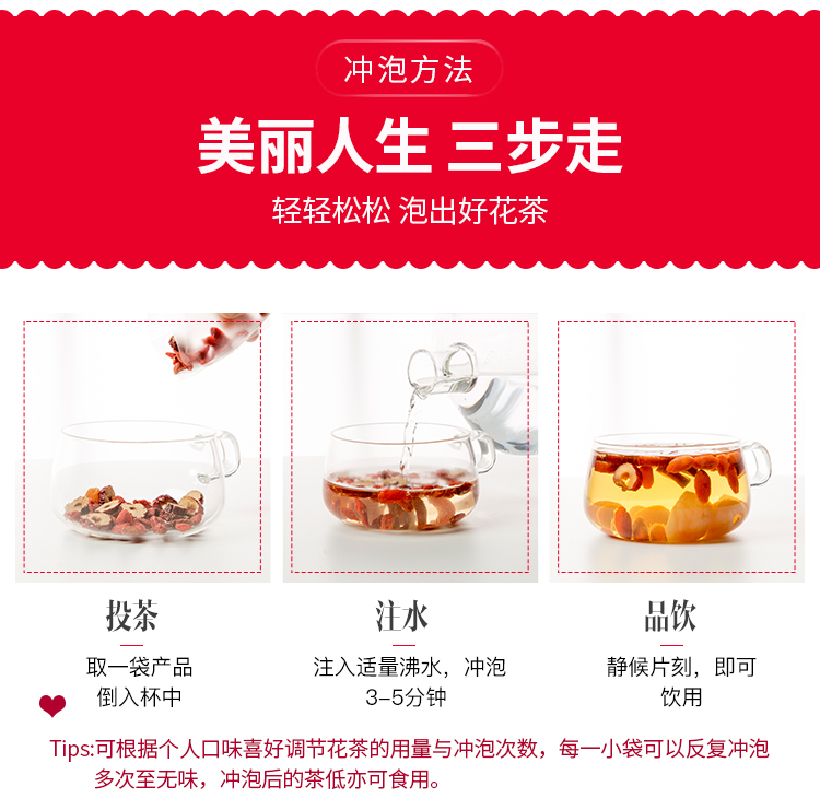 女人如花需要养!女人有三宝,枸杞桂圆和红枣!补气补血暖宫养颜,美味又好喝,补充元气,滋润养颜。是茶不是药,养生有神效!每天一包,喝出好气色!