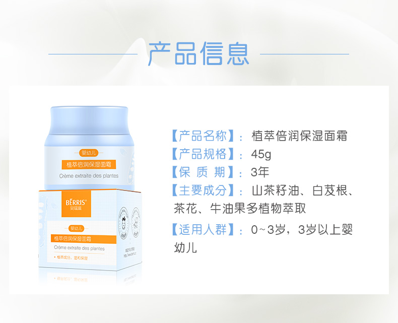 贝瑞滋儿童滋润面霜保湿霜宝宝润肤乳