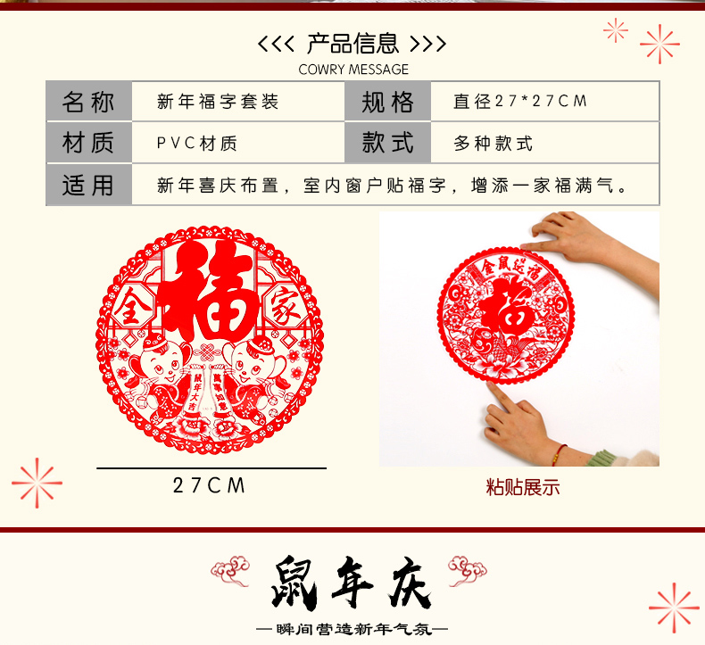福运到,年味足,正反可贴,PVC材质,SGS质量监督,寿命更久,环保无毒,易贴易移除,防水防晒不褪色,别致的装饰,多图可选,嗨翻新年【赠送运费险】