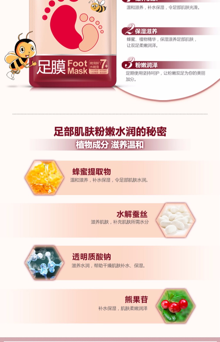 【直接拍5件!第2-5件0元!】融入蜂蜜+植物精华,温和无刺激,修复干裂,去老茧,去死皮,去角质问题,一敷到位,轻松解决!给你的双脚SPA级的养护~【过敏包退】