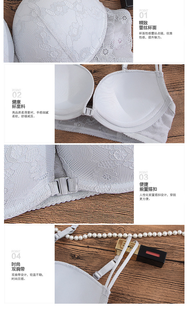 日本班诗诺 无钢圈前扣蕾丝文胸