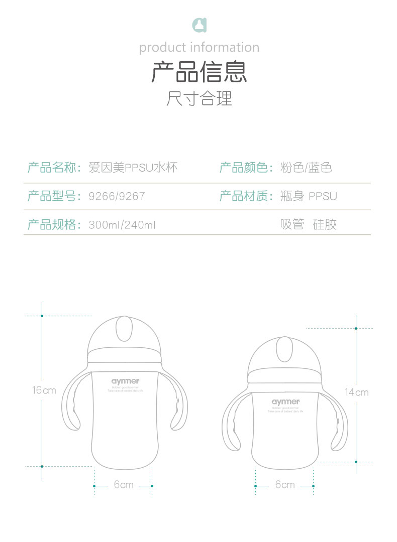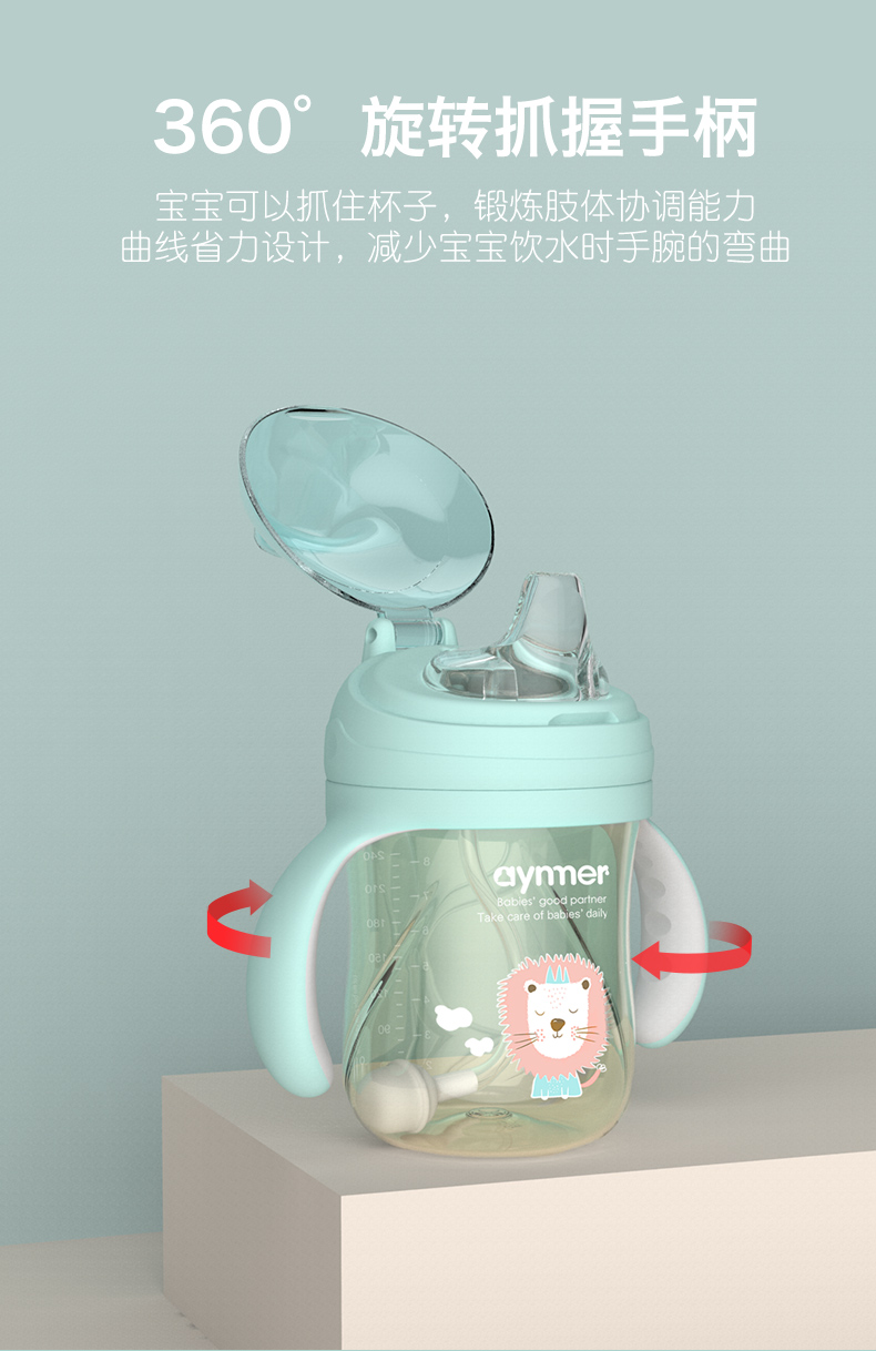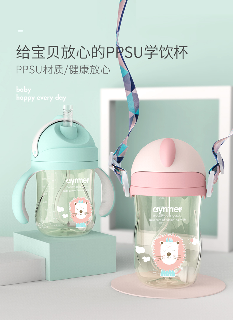 【爱因美旗舰店】宝宝吸管杯,PPSU材料防呛防漏鸭嘴杯,带吸管重力球学饮杯!V型吸管软糖般硅胶吸嘴,不含双酚A,360°旋转手柄,耐高温消毒可使用五年!品牌承诺宝宝健康,妈妈安心!【促销34.9元】