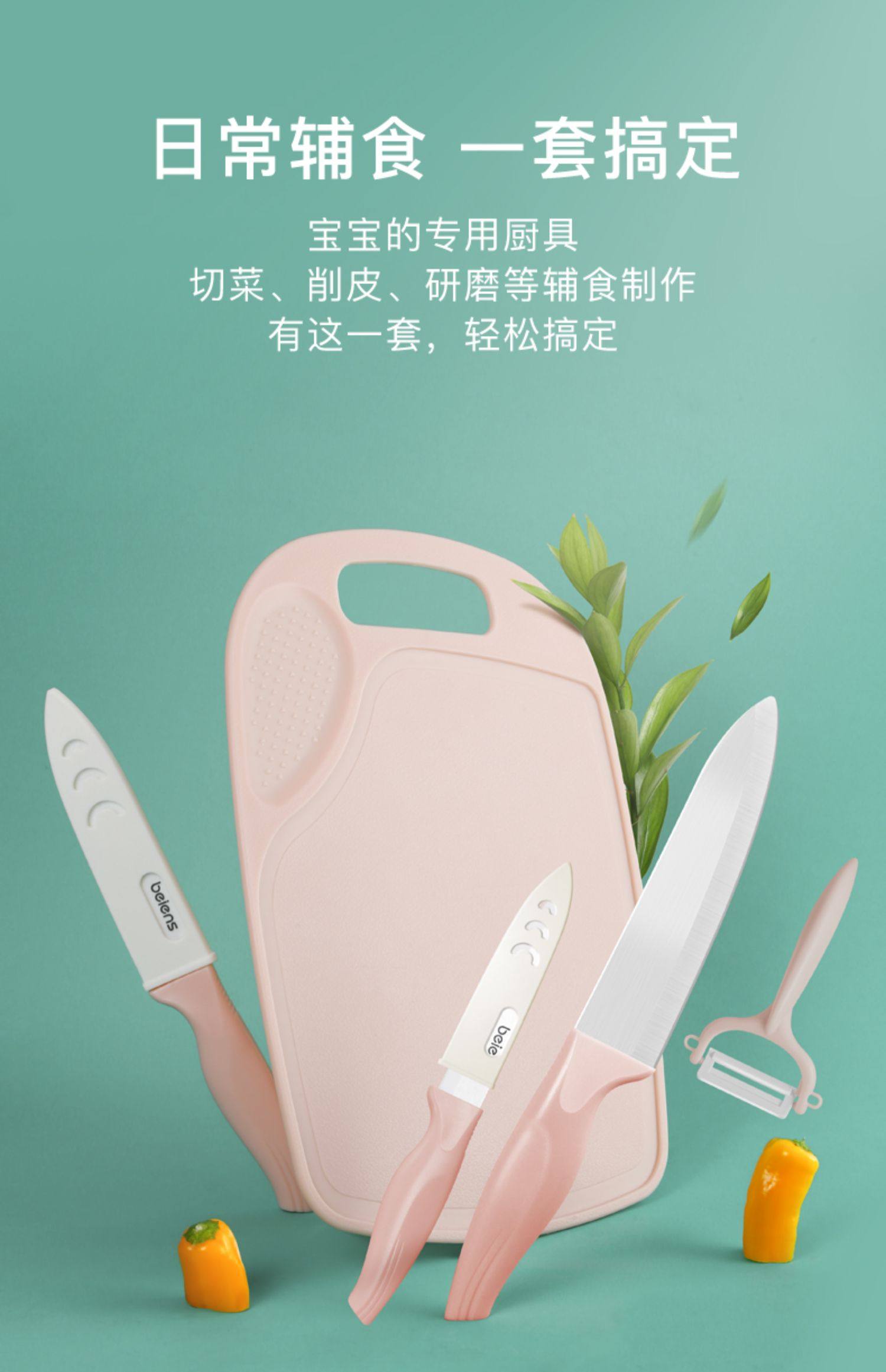 日常辅食,一套搞定,宝宝的专用厨具,切菜削皮研磨都可以!陶瓷刀锋利不生锈,轻巧便携,切肉切菜,轻松不留痕,安全又健康!家庭必备~【赠运费险】