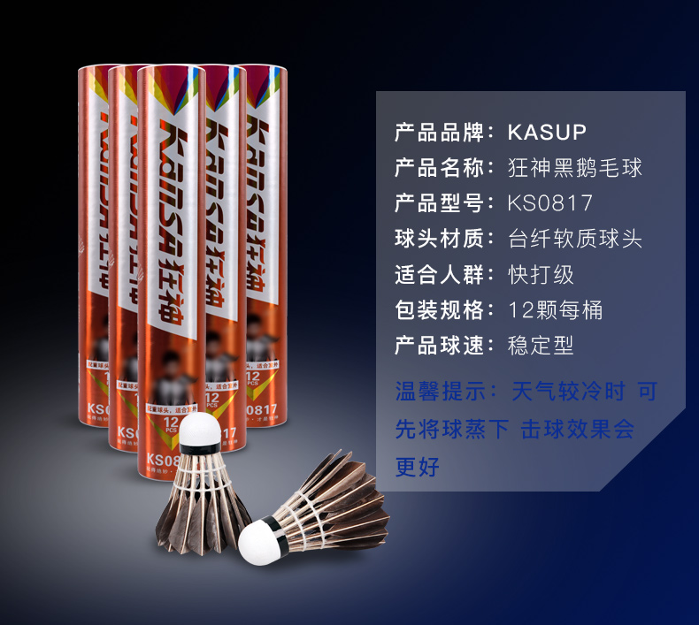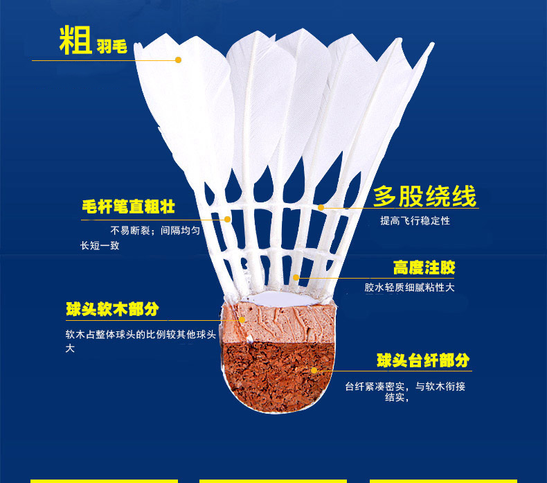 【狂神】打不易烂羽毛球12只,正品,耐用耐打,不易裂开,防伪可查,天然羽毛,做工精细,落地精准,高密度线圈,台纤球头弹性好,做工精美,羽毛球爱好者专用训练球【赠运费险】