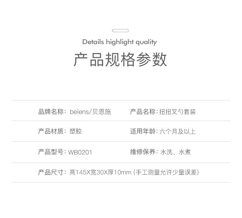 贝恩施,专业母婴品牌,品质靠谱!!专为宝宝设计的叉勺!优质材质,安全健康,360度弯曲,便携收纳,易抓握,带脚刀叉防脏,给你宝宝用这个,可喜欢自己吃饭了【赠运费险】