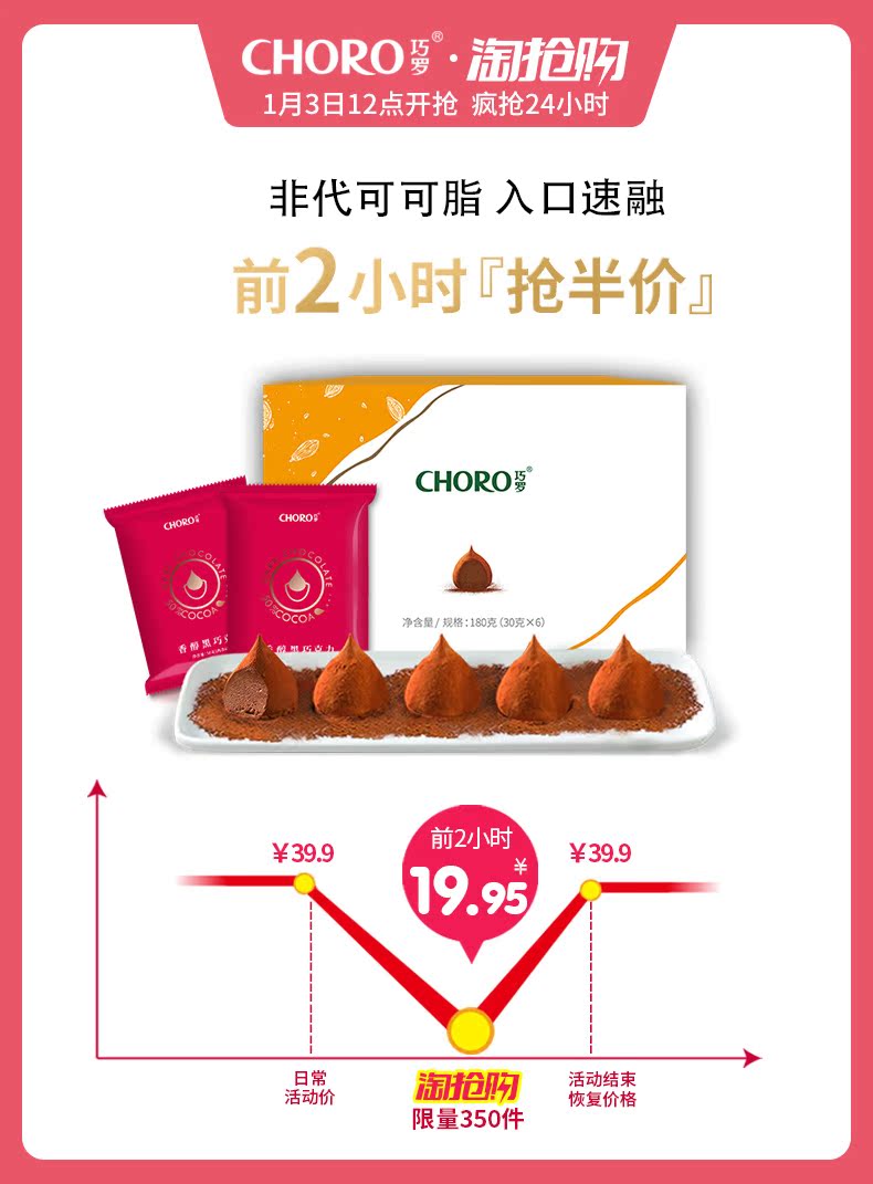 大牌巧罗!可可脂经典松露巧克力,独立小包装,一盒6袋,一袋6颗,总36颗,精选进口好料,纯手工制作,浓郁丝滑,大师精致工艺,口感绵滑,浓郁香味,入口即化!