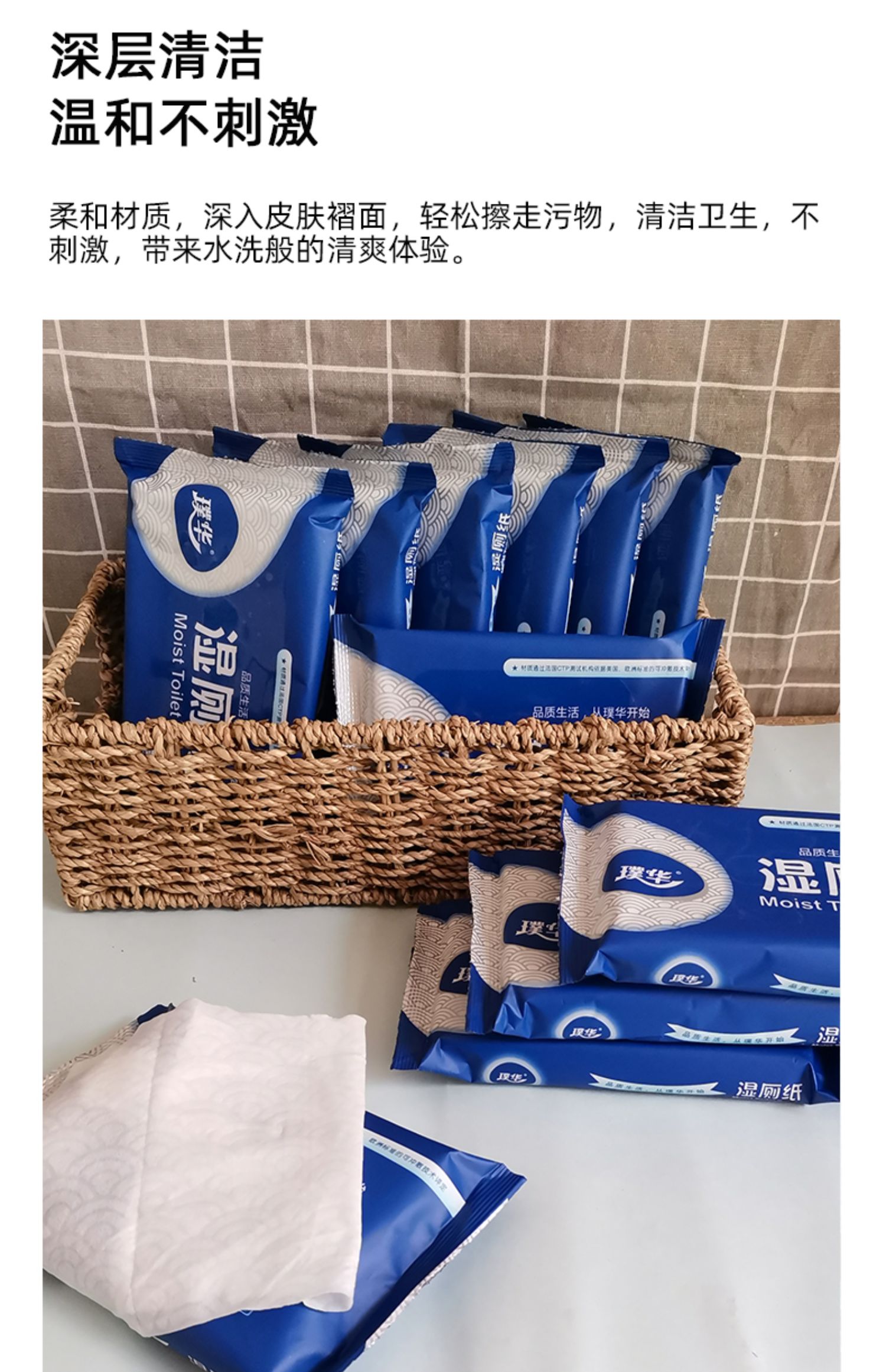 【旗舰店】内部优惠,立减5元!仅需14.9元3包,120片!璞华可冲散型湿厕纸,采用和维达相同材质的纸张,彩虹压花,不堵马桶!