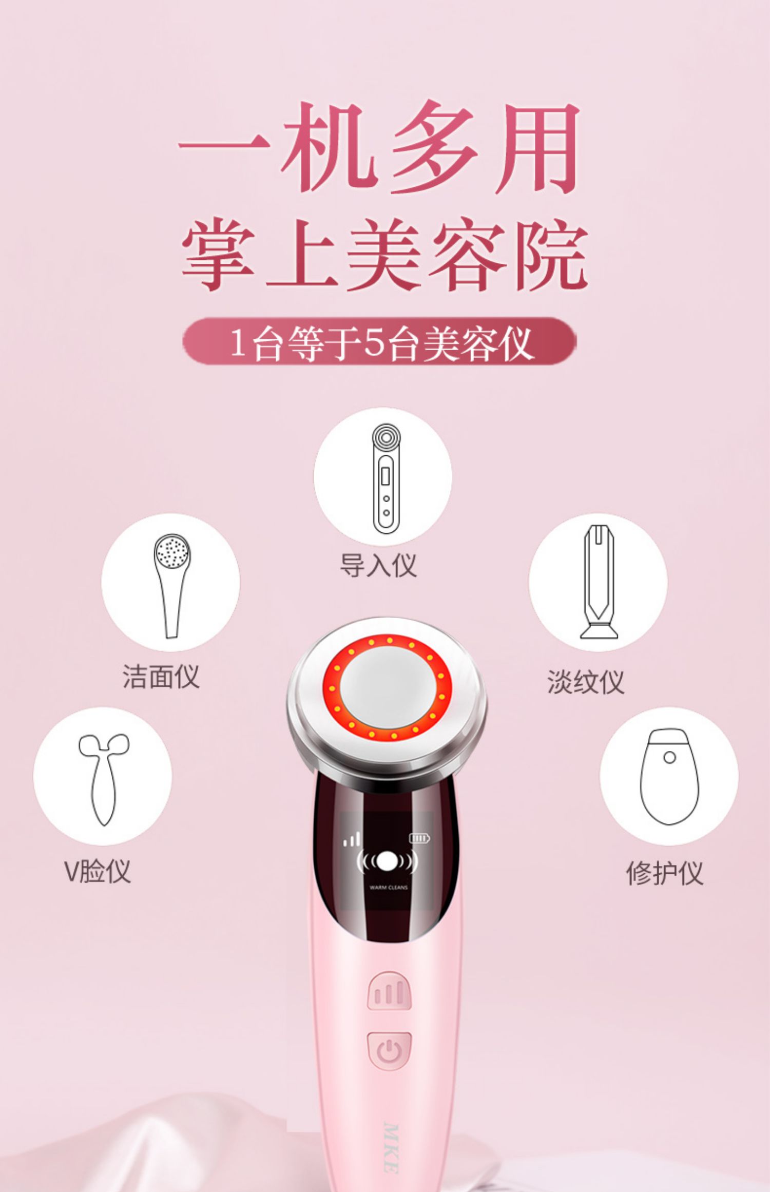 李佳琪推荐美容仪,每次4分钟给您白透光感肌,深层清洁毛孔污垢,嫩肤淡纹+眼部护理+洁面+精华导入,一机多用~!让肌肤重回18岁嫩白肌~!【赠运费险】