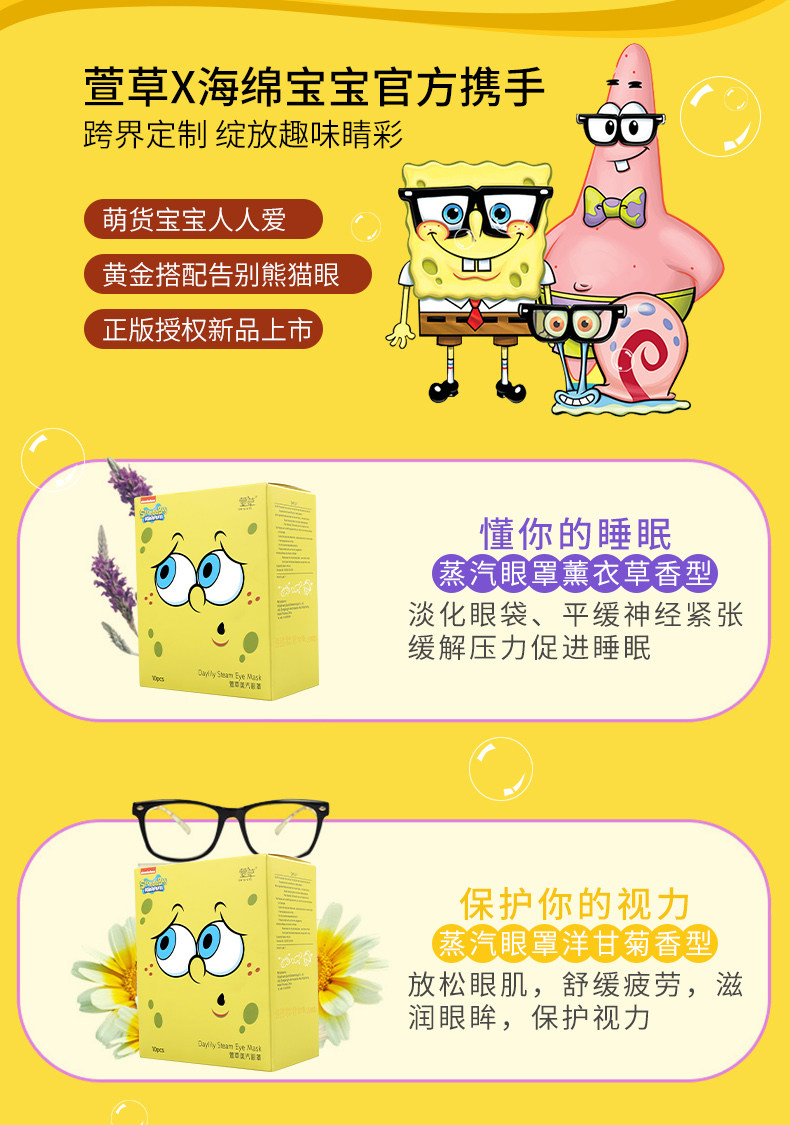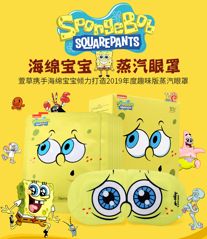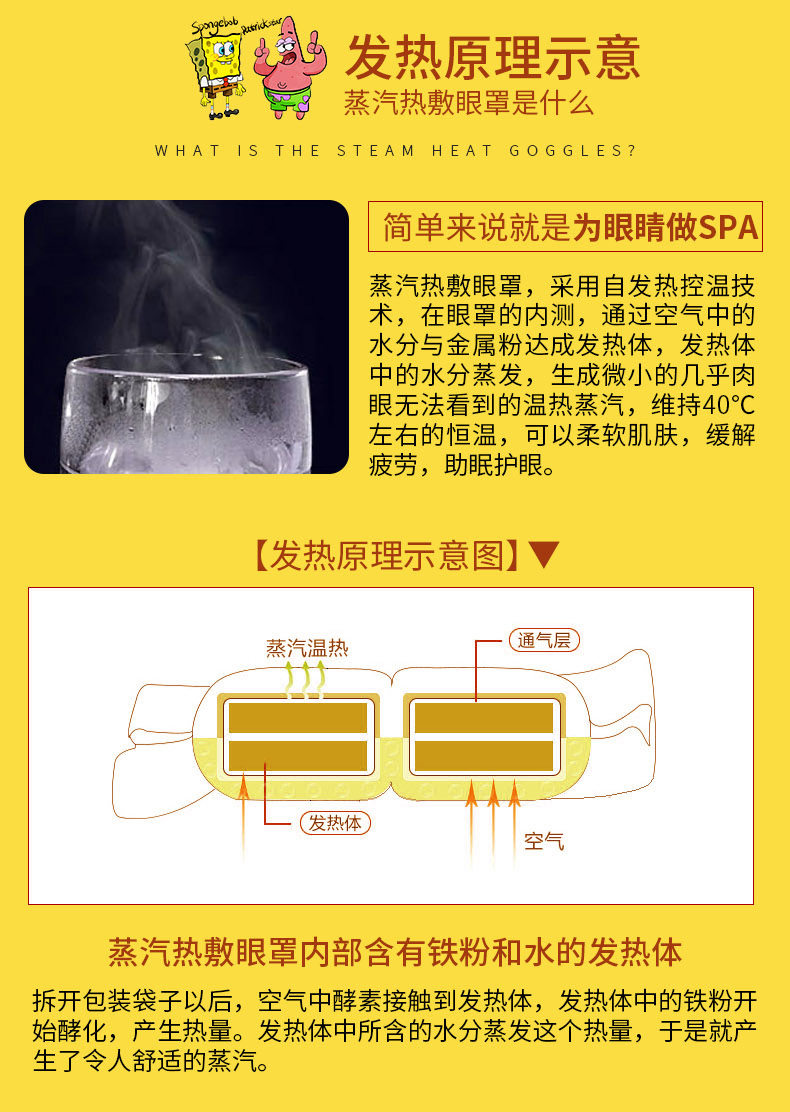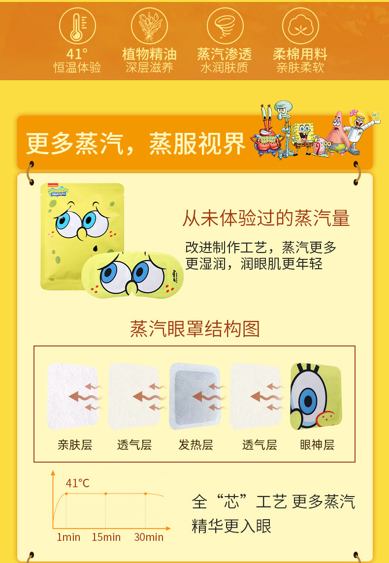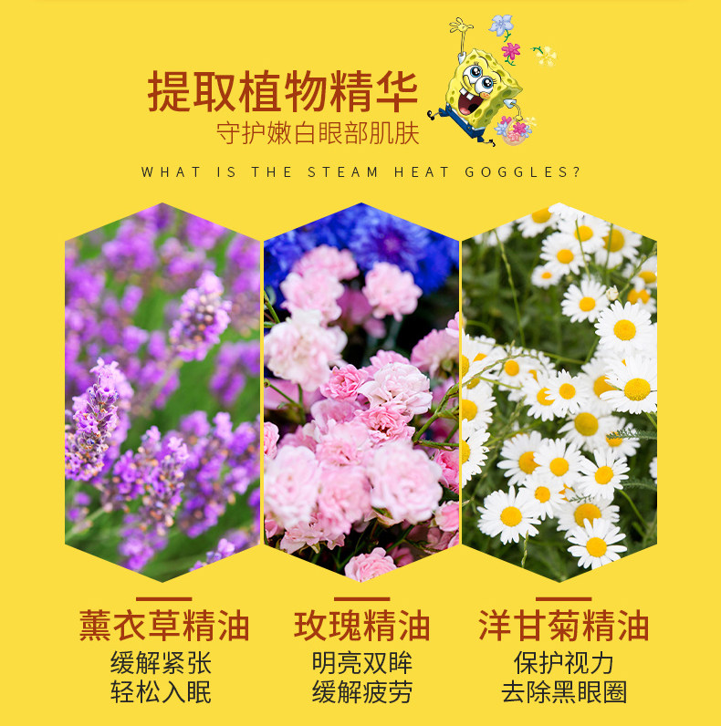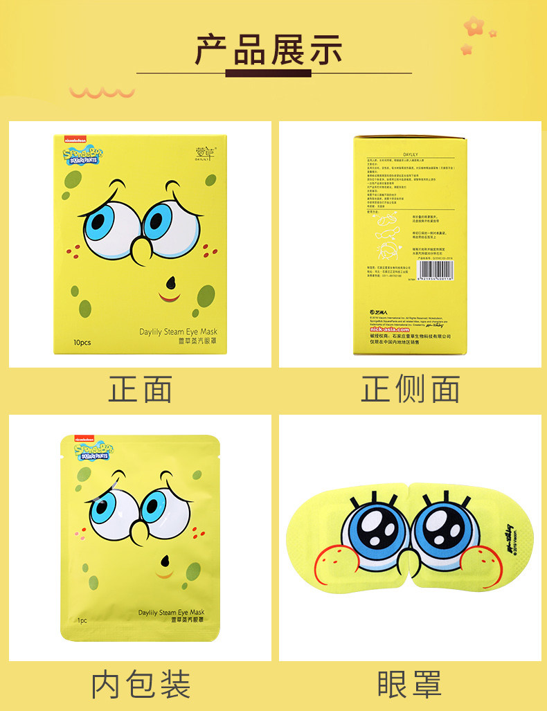 萱草海绵宝宝蒸汽热敷眼罩男女睡眠遮光发热