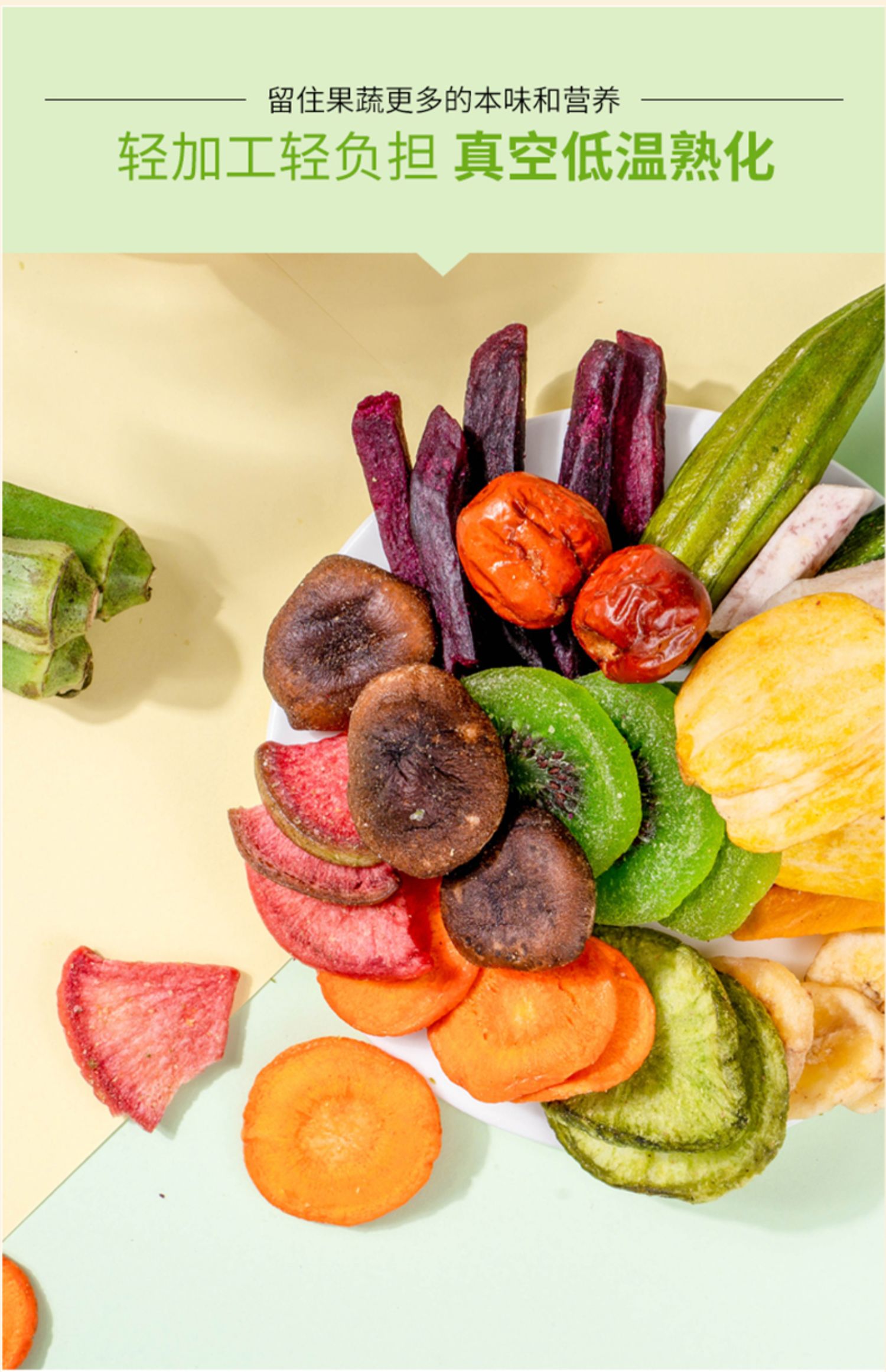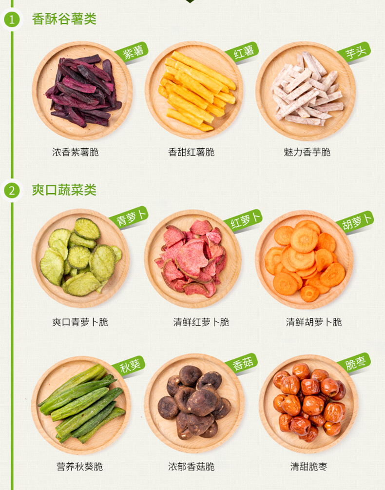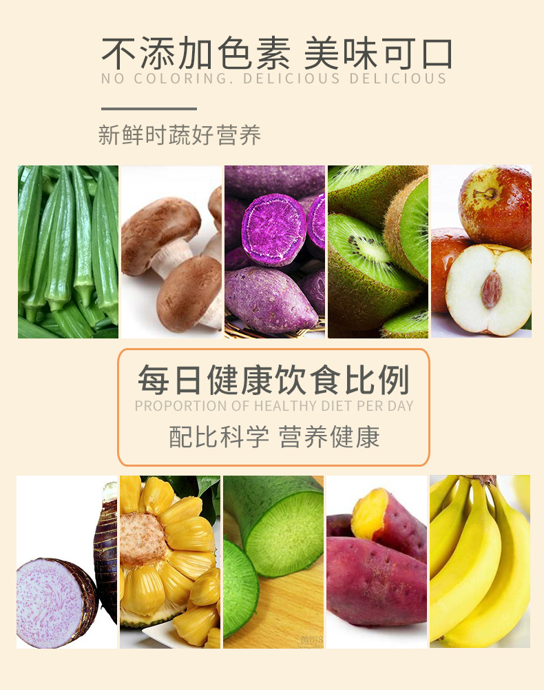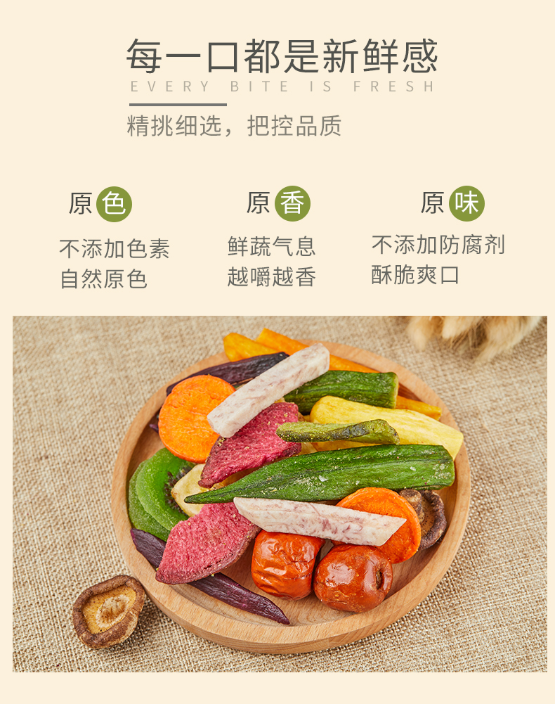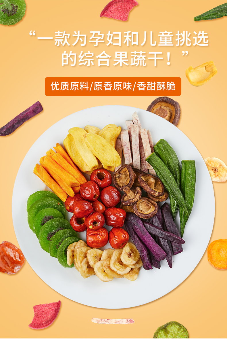 综合10种果蔬配方,非油炸、无色素~酥脆爽口,孕妇小孩都能吃!