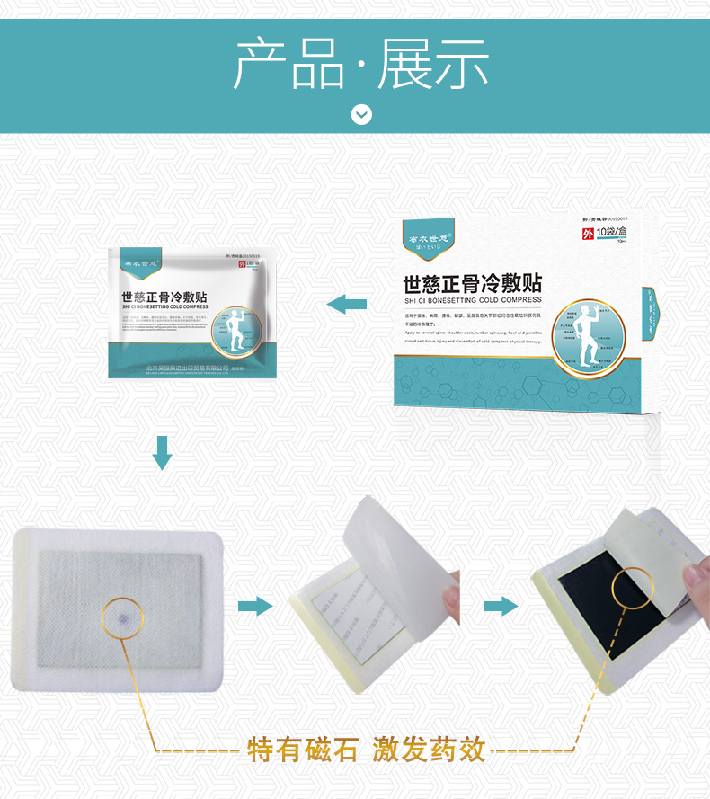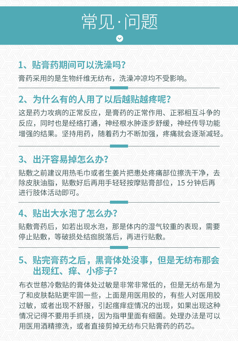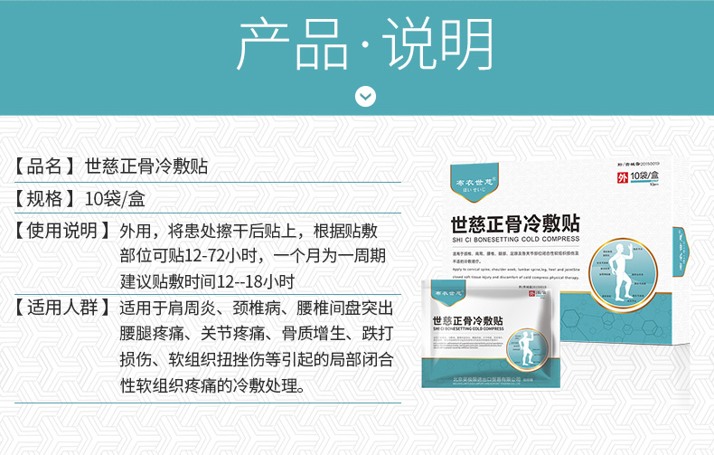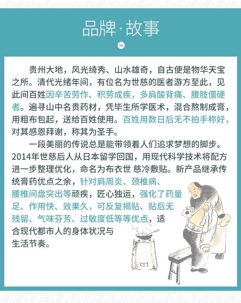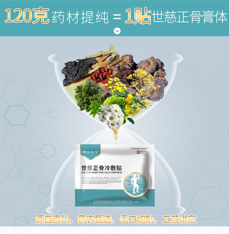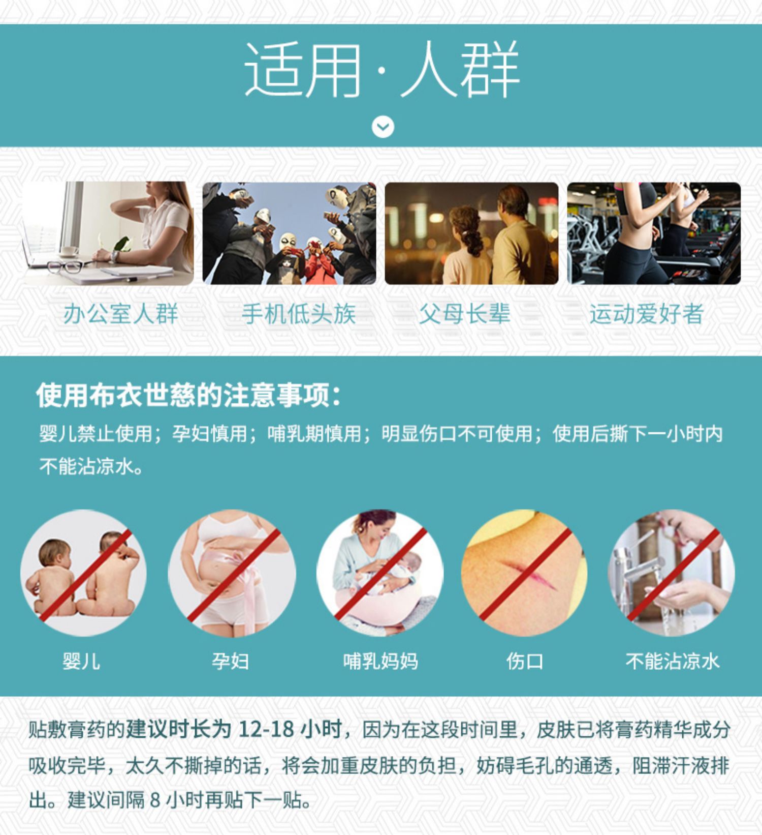 布衣世慈冷敷贴,膏药销量TOP产品,长辈都喜爱的口碑产品,对腰腿疼痛、关节炎、腱鞘炎,滑膜炎等炎症类疼痛、颈椎病,风湿类风湿性病痛等均有明显效果!