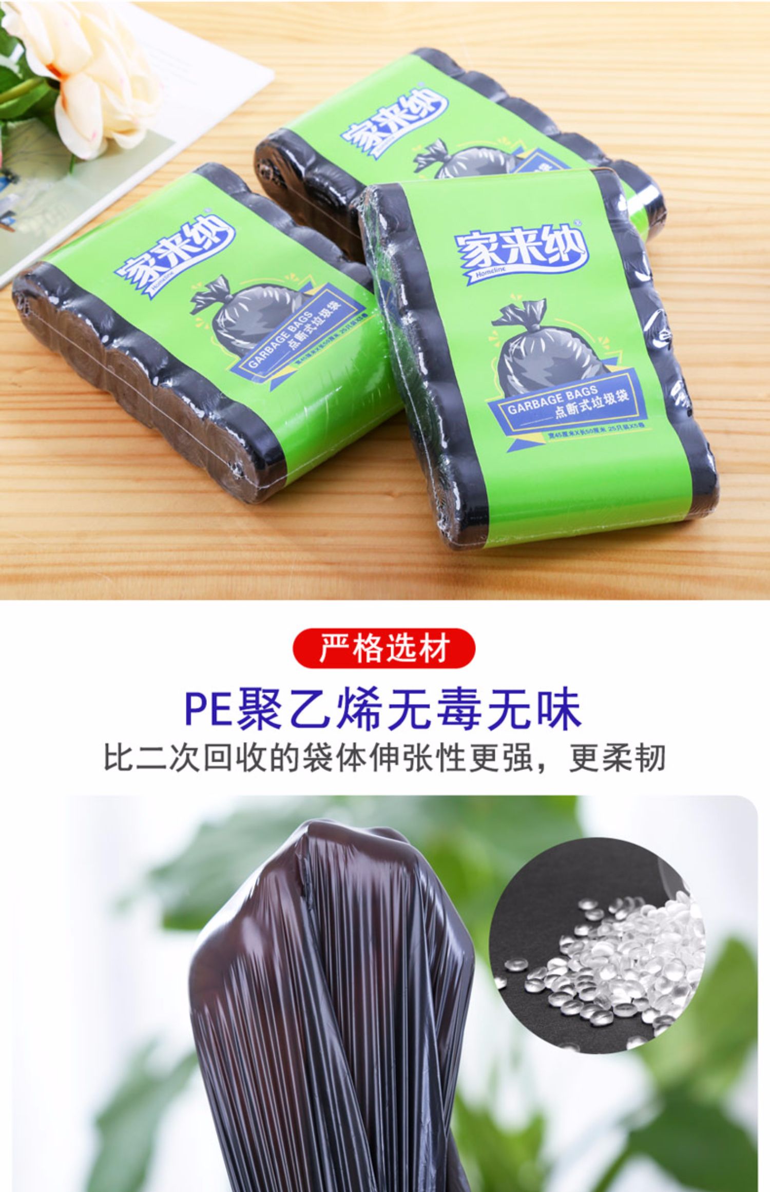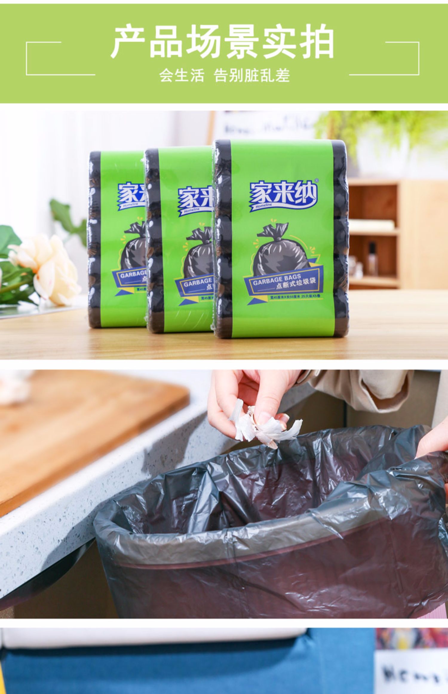 第二件半价,第三件0元,家来纳垃圾袋黑色平口式环保分类清洁袋,一次性加厚家用厨房塑料袋,赠运费险