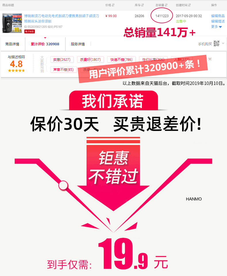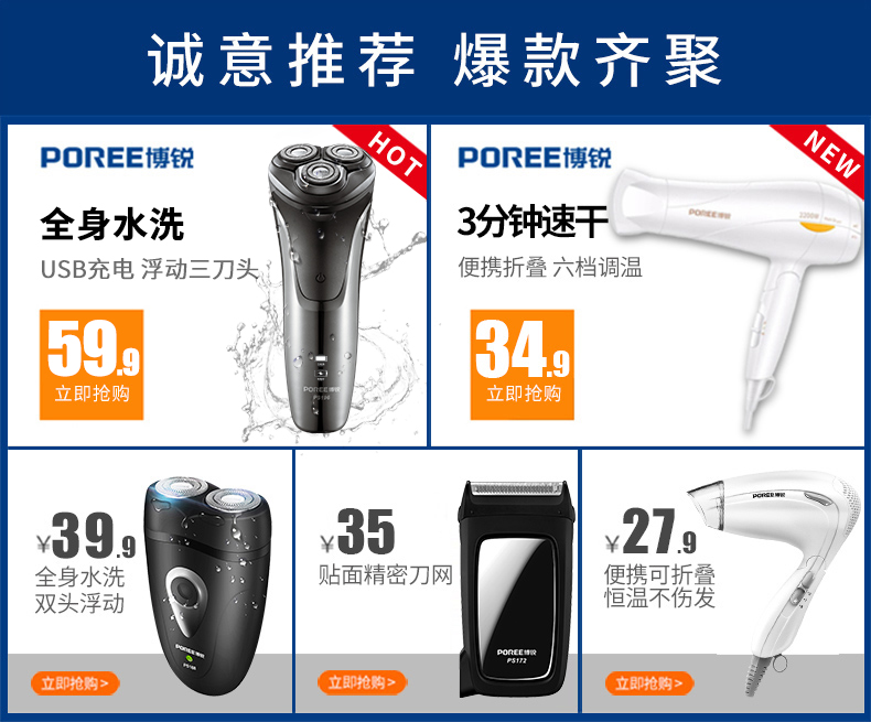 飞科旗下品牌,刀头水洗的,而且是双层独立浮动的,剃须很干净,比那些大几十上百块的不差!