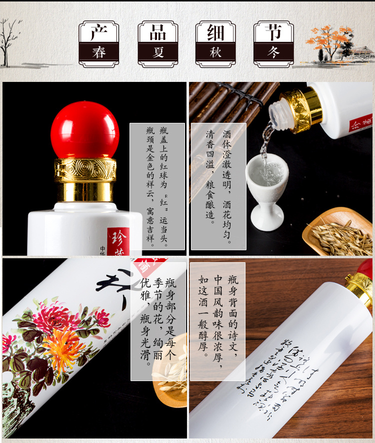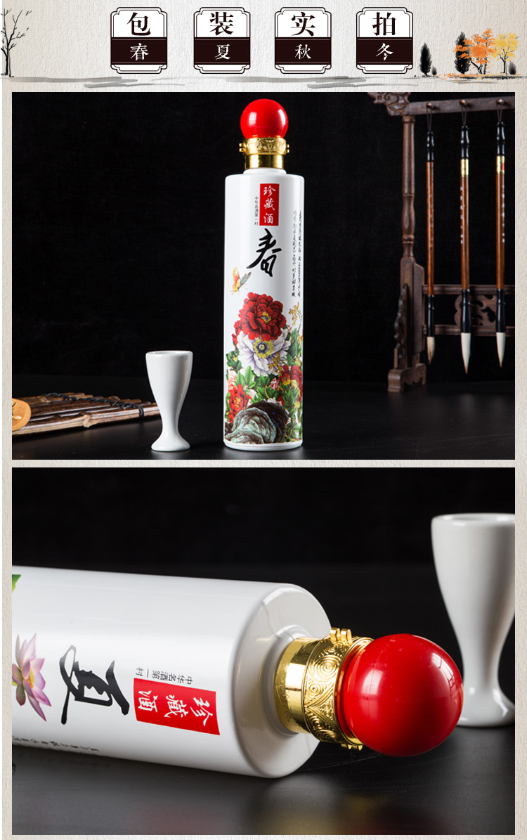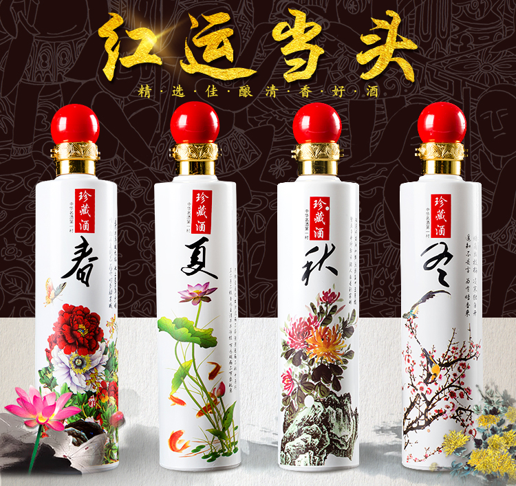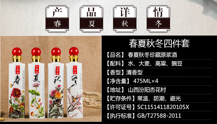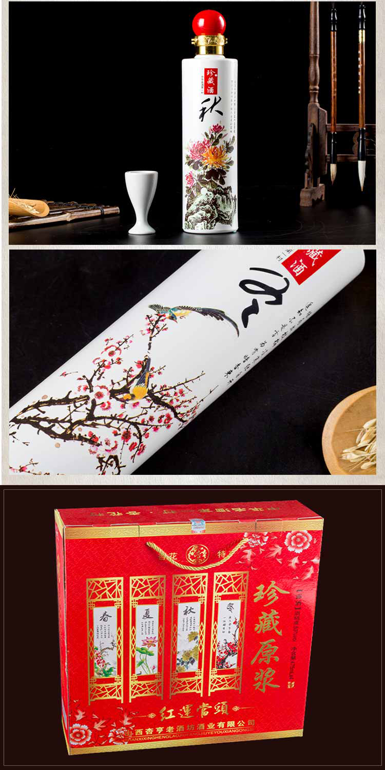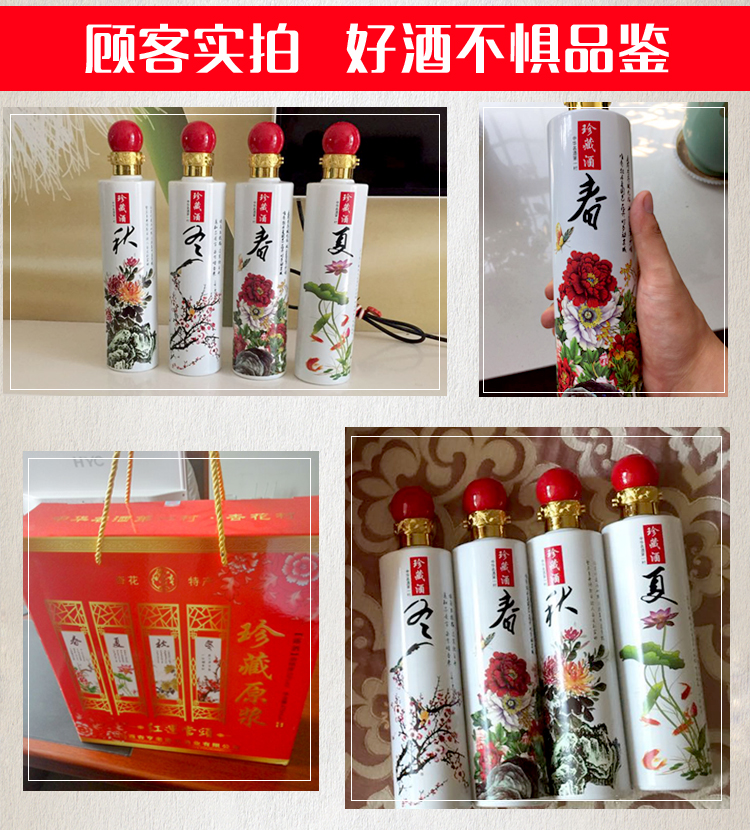 2017年产老酒白酒礼盒,装整箱春夏秋冬送礼53度,475×4瓶装原浆酒纯粮食清香型,景德陶瓷工艺酒瓶,优雅高贵,纯粮食酿造,送礼倍儿有面!