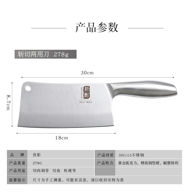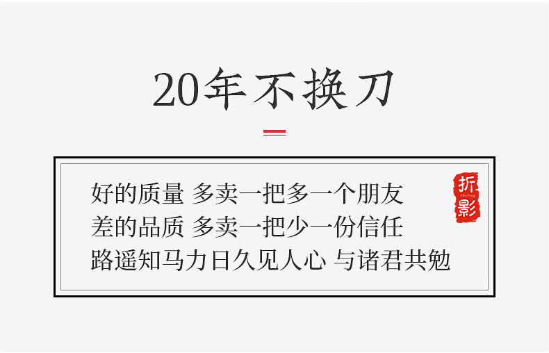 有把好刀,才能做好菜啊~折影20年老品牌!刀身一体成型无拼接,双面开封,锐不可当,手感舒适好握,切菜速度嗖嗖的,又快又省力~【顺丰包邮,赠运费险】