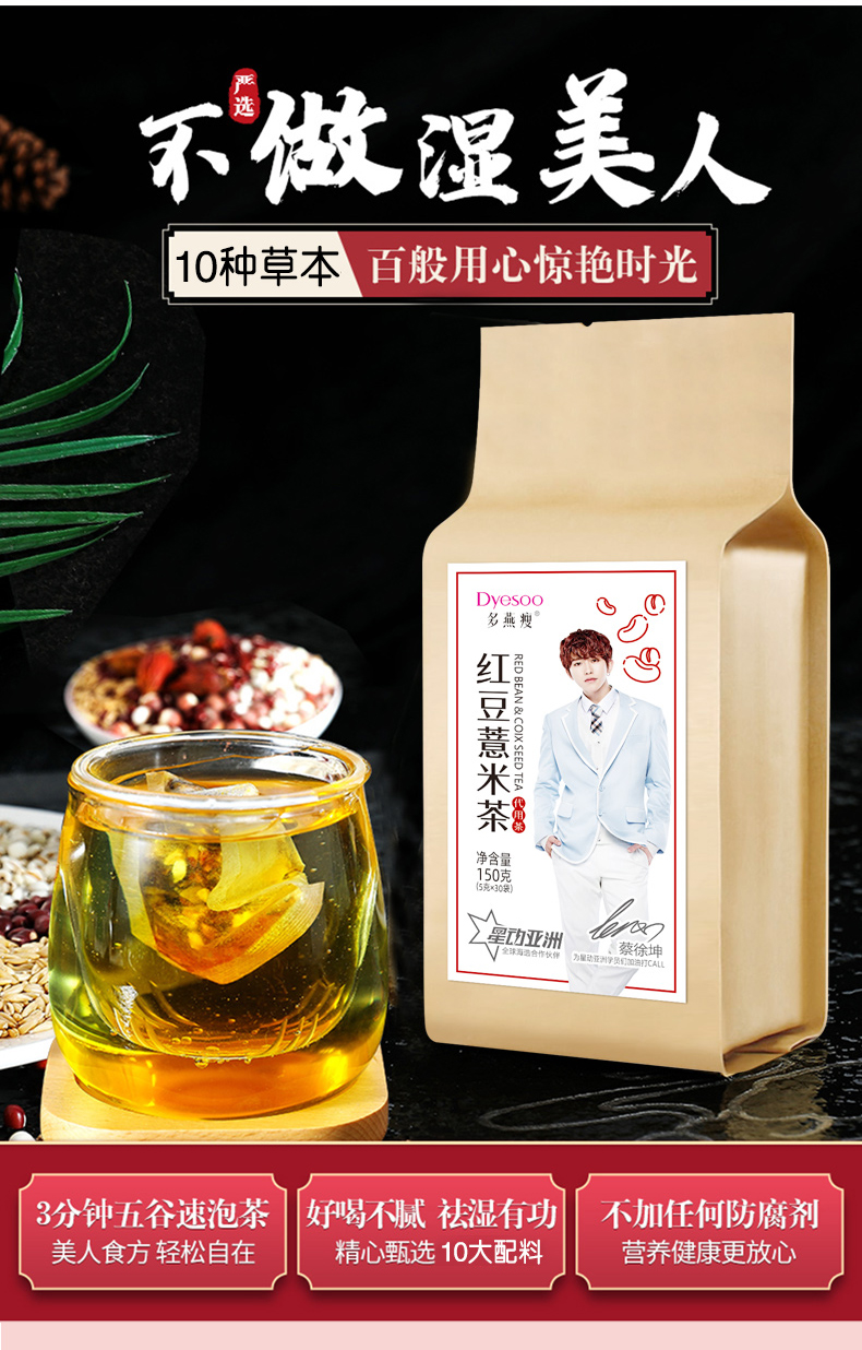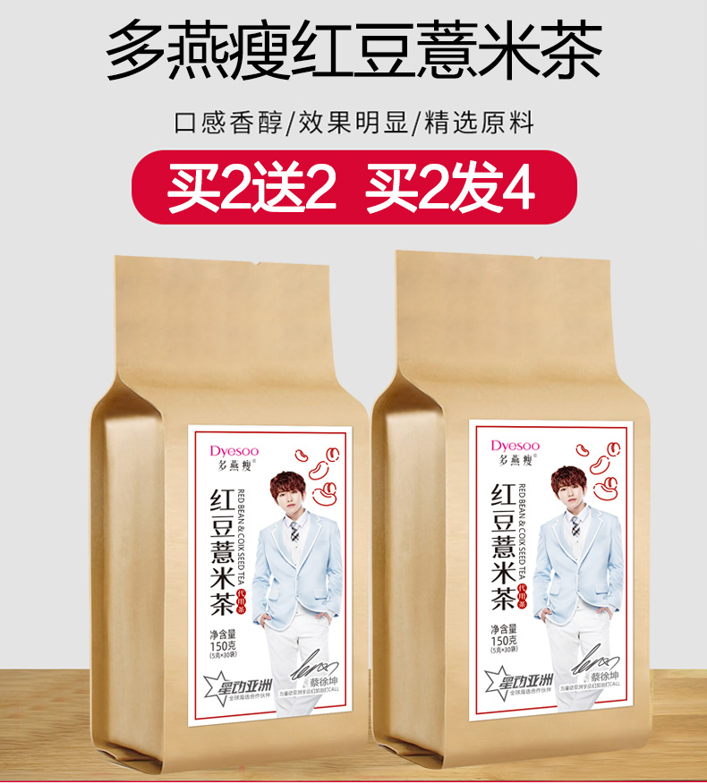 【买二送二】多燕瘦出新品啦,坤坤和郑多燕推荐,红豆薏米茶,拒绝湿气,精选多种谷物,真材实料,独立包装,1袋一包,科学配比,口感醇厚,摆脱身体湿气。