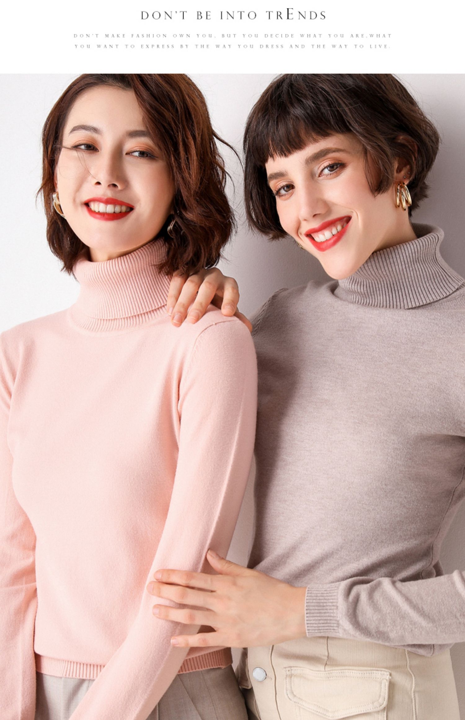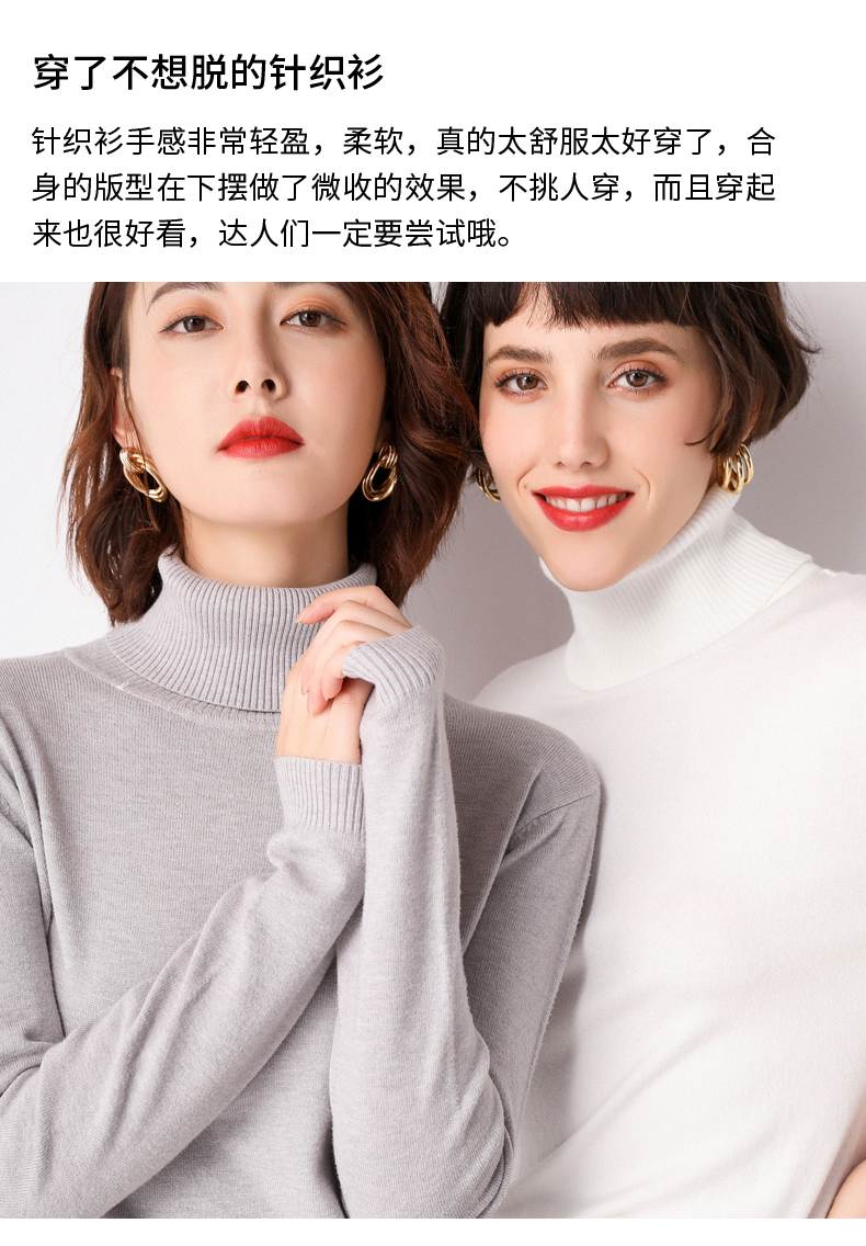亏本冲量,第二件5元,一定要拍2件,高翻领针织衫,2件只要44!绝对赚了!~款式简约、大气,上身很显身材!显白!不缩水、不起球、不褪色!多色可选~
