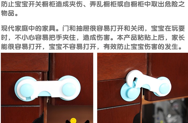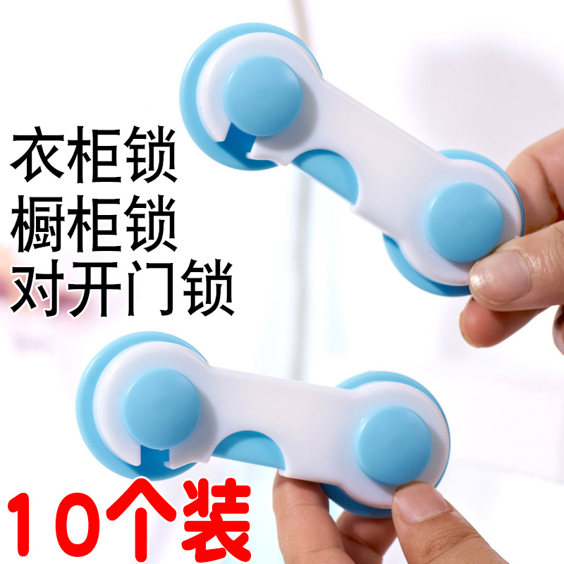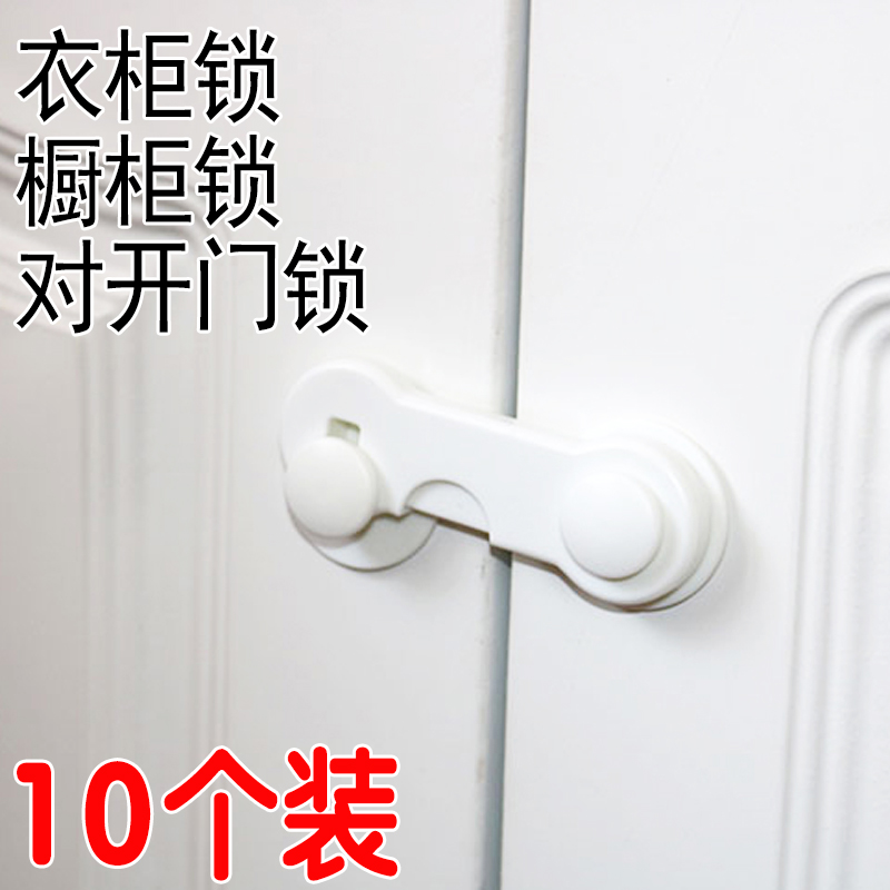 10个装儿童安全锁,适合对开的衣柜门,橱柜门,防止宝宝开关橱柜造成夹伤,有效防止宝宝伤害的发生。赶紧买!!!