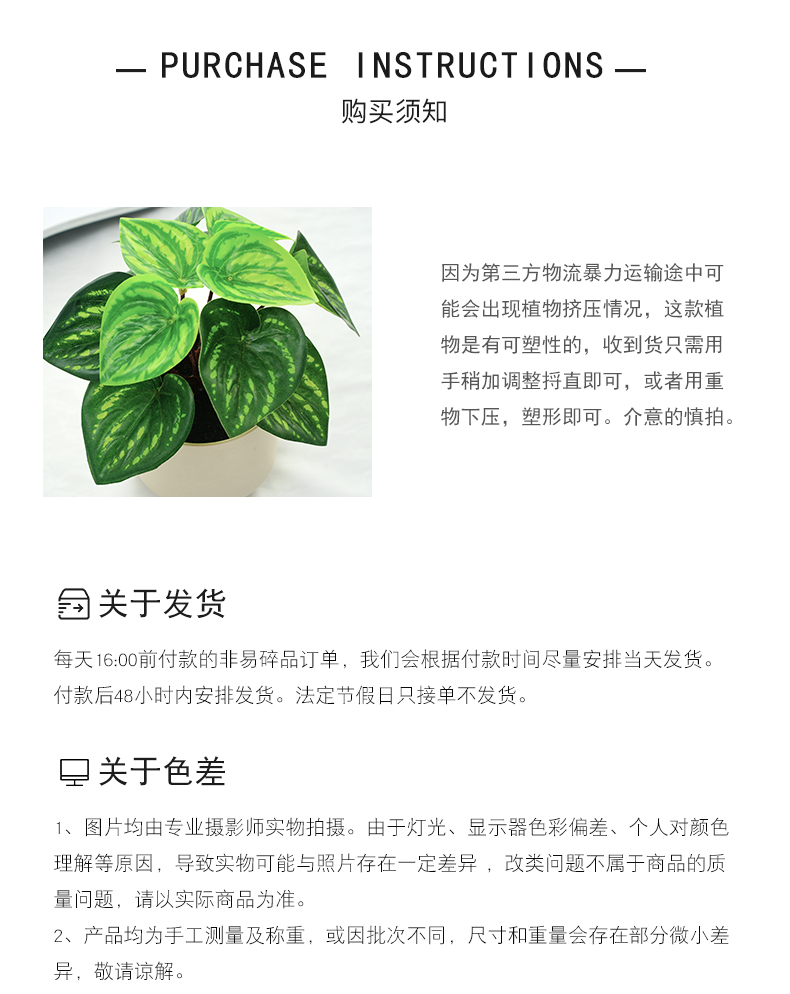 为生活增添一抹新意~北欧ins风仿真绿植赶紧安利!采用塑胶防水布料,落灰可随意擦拭,色彩也是靓丽清新,放在书桌,阳台,客厅里,让家更温馨,满满幸福感!