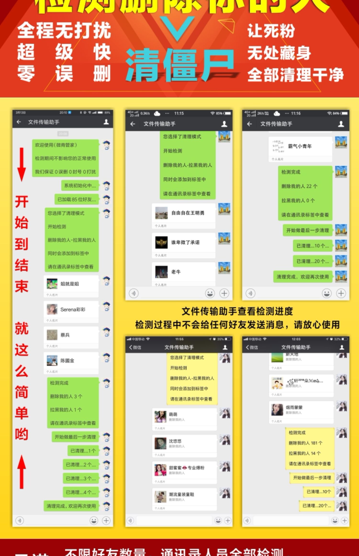 微信清理僵尸死粉一键删除,苹果安卓清死尸僵死粉软件。安全稳定快捷。自动清理僵尸粉,无打扰模式,无需下载,云端检测!安全稳定快捷。急速查出,安全可靠
