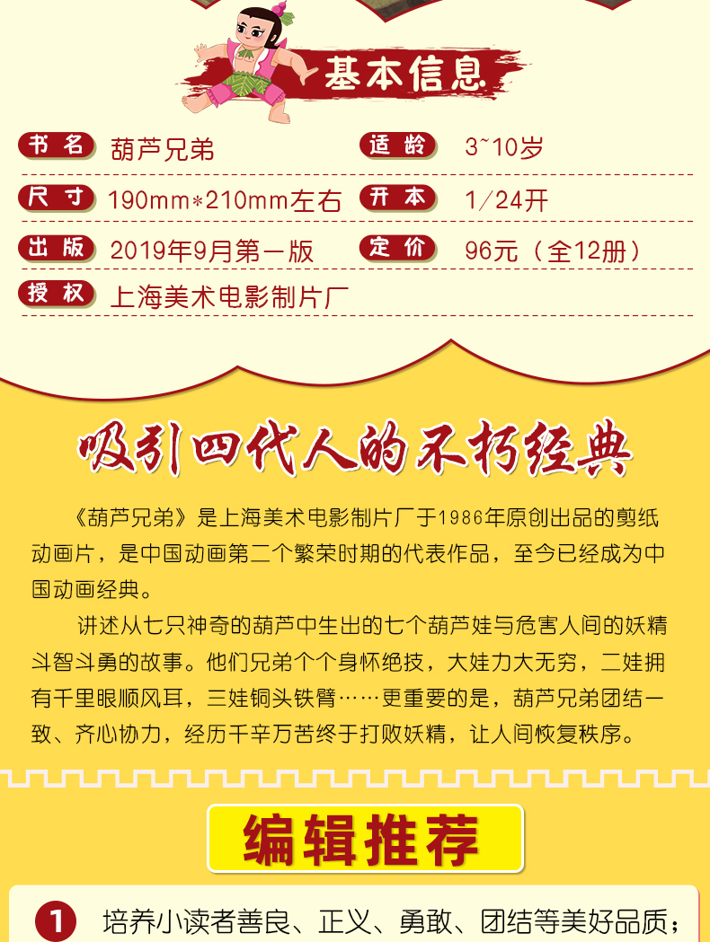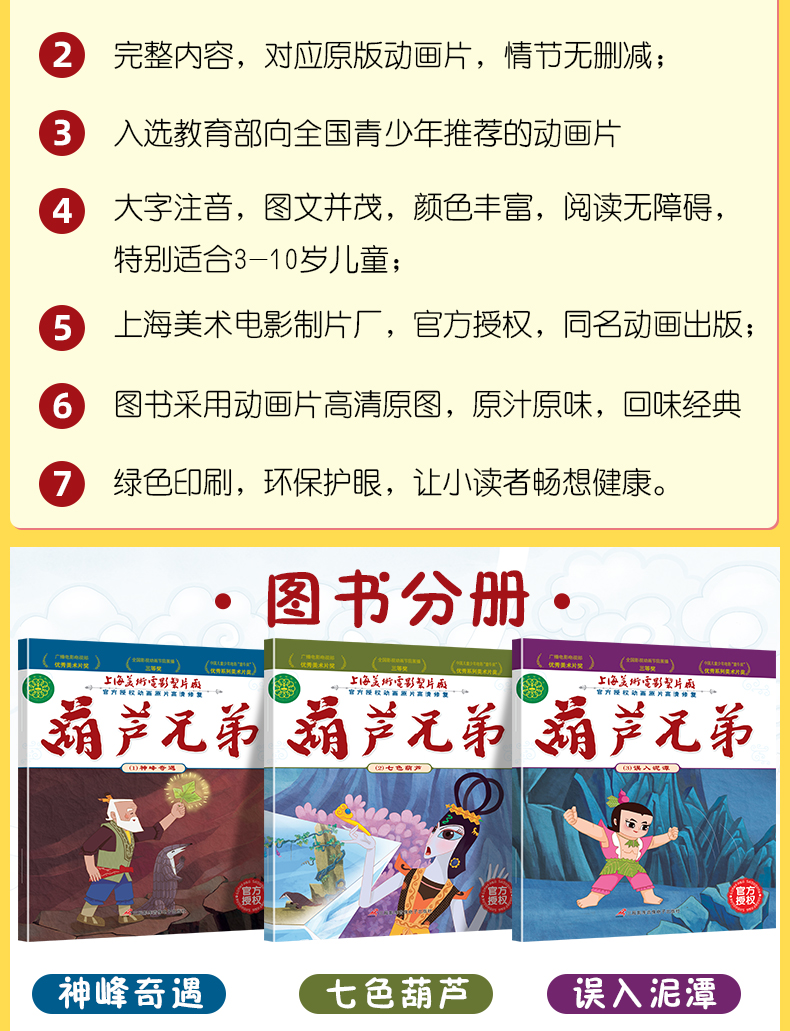 上海美术电影制片厂官方授权,内容完整,对应原版动画片,情节无删减,不仅可以给孩子看,大人们也能在其中找到回忆,全套共12册,超划算!