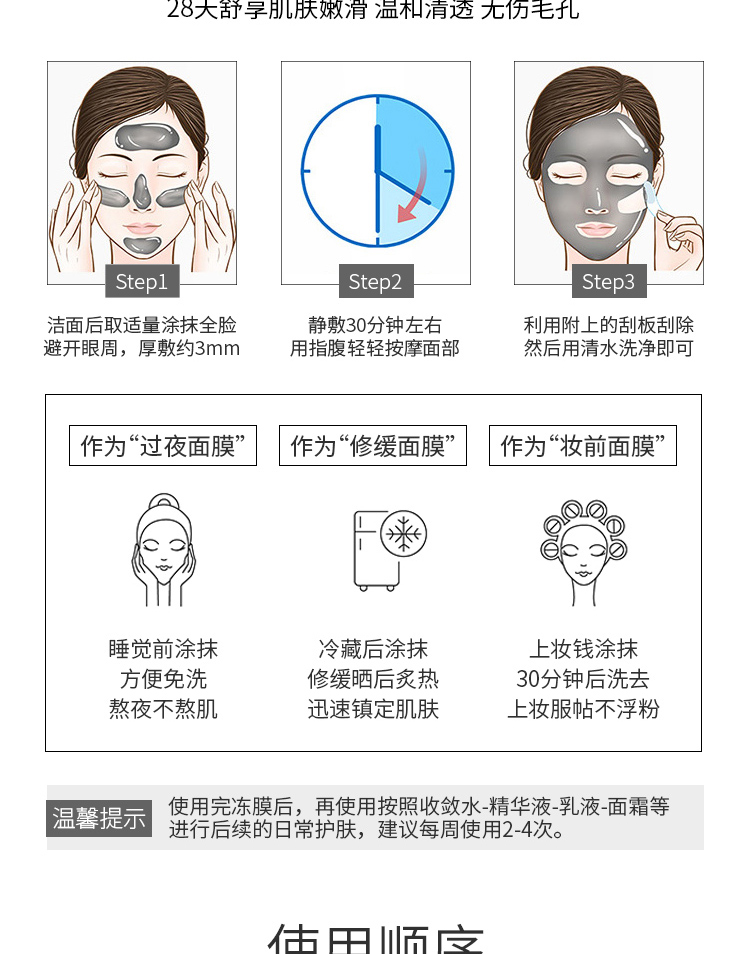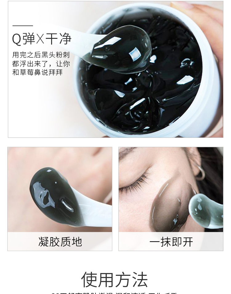 法缇丽净透修护黑冻膜,深层吸附黑头、粉刺、油脂等毛孔垃圾,吸走面部油光,补充水能,体验皮肤的娇嫩润滑,还您嫩白无暇肌肤,跟粗毛孔,黑头说拜拜~!【赠运费险】